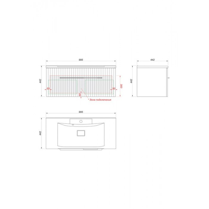 Направляющими скрытого монтажа для плавного и бесшумного движения ящиков;