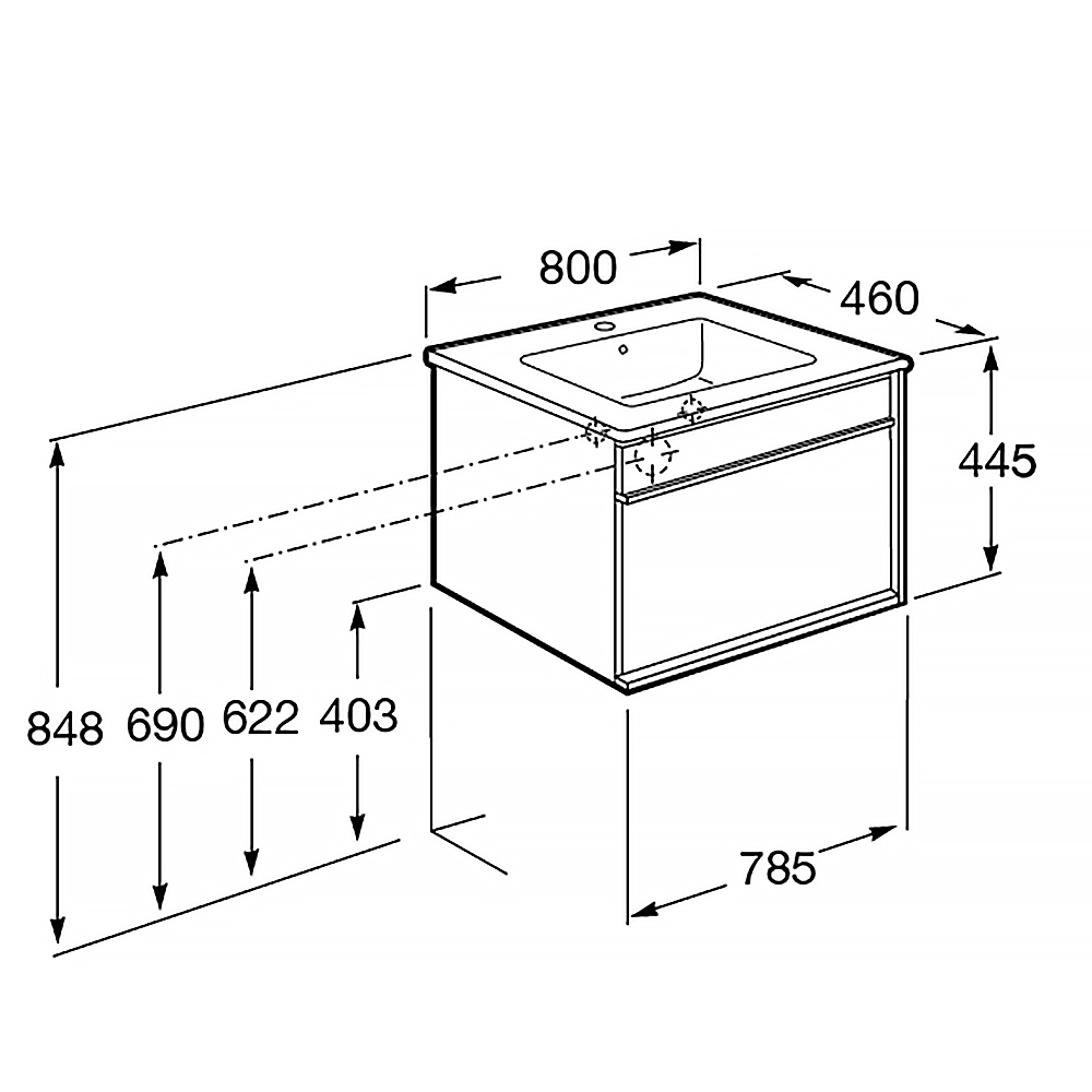 Тумба под раковину Roca Aneto 80 см подвесная белая