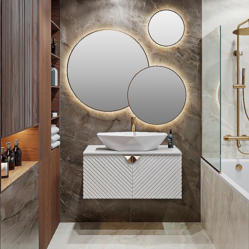 Тумба под раковину в ванную RUNO Андорра (подвесная) – это изысканность и утончённая роскошь в интерьере. Рифленые фасады визуально «оживляют» и «приводят в движение» всю обстановку комнаты, сохраняя при этом умиротворение и покой. Цвета корпуса и фасада имеют идеальное классическое цветовое сочетание глянцевого и матового белого цвета, которые идеально впишутся в любой интерьер ванной комнаты. Тумба с двумя распашными дверцами, дверцы оснащены петлями с доводчиками (верхняя с доводчиком, нижняя без доводчика). В комплекте: 2 ручки, навесы для крепления к стене. К тумбе для ванной подойдут умывальники на столешницу: «OVALE 50» (50х36см) - идеальное решение для стильного интерьера ванной, создан для минималистичных интерьеров и подойдёт для санузлов в стиле лофт, минимализм и хай-тек. Строгая овальная геометрически правильная форма раковины, усиливает идею лаконичности в дизайне, устанавливается на столешницу, накладным методом. «PALLA D41» (диаметр 41см) - идеальное решение для стильного интерьера ванной, создан для минималистичных интерьеров и подойдёт для санузлов в стиле лофт, минимализм и хай-тек. Строгая круглая геометрически правильная форма раковины, усиливает идею лаконичности в дизайне, устанавливается на столешницу, накладным методом. «TRE 48» (48х37см) - идеальное решение для стильного интерьера ванной, создан для минималистичных интерьеров и подойдёт для санузлов в стиле лофт, минимализм и Хай-Тек. Строгая прямоугольная форма с округлыми углами усиливает идею лаконичности в дизайне, устанавливается на столешницу, накладным методом. «TERZO 60» (59х39см) - идеальное решение для стильного интерьера ванной, создан для минималистичных интерьеров и подойдёт для санузлов в стиле лофт, минимализм и хай-тек. Асимметричная раковина, которую можно установить любой стороной, дизайнерское решение для нестандартных интерьеров, усиливает идею лаконичности в дизайне, устанавливается на столешницу, накладным методом. И другие накладные раковины бренда RUNO.