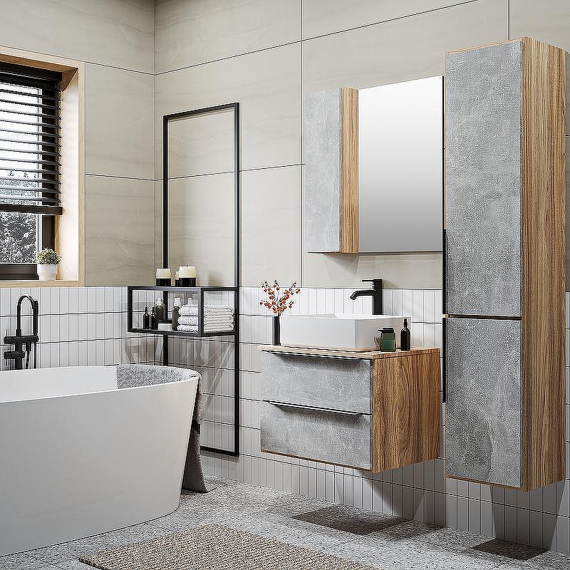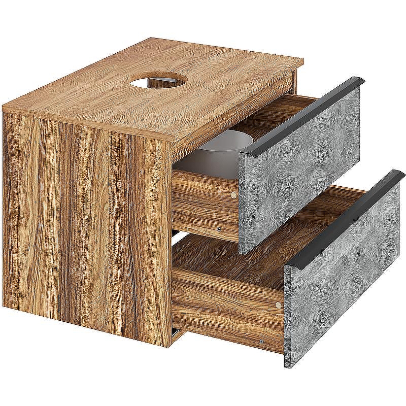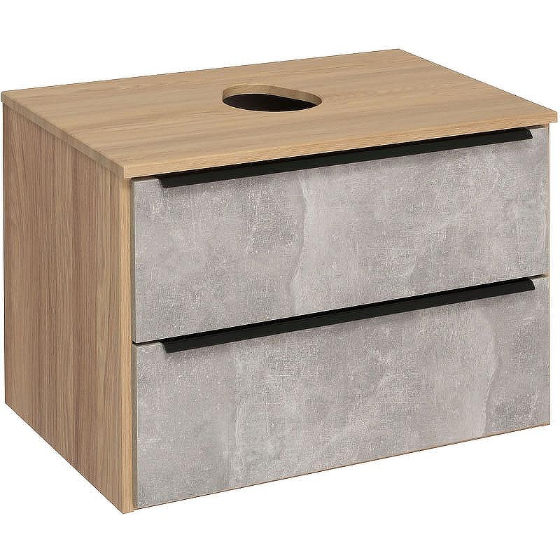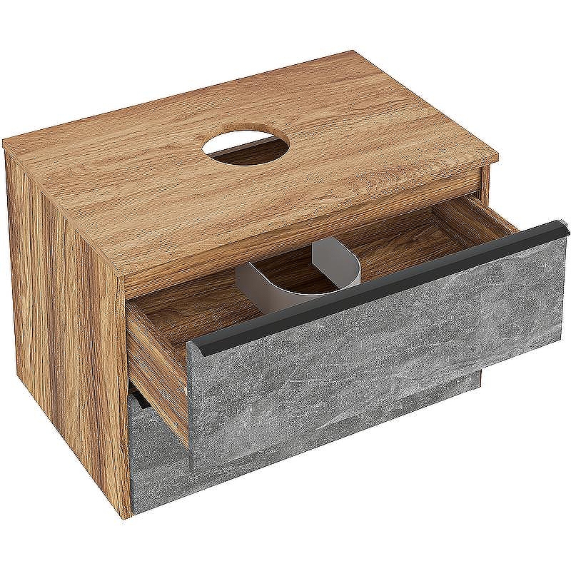 Тумба под раковину Мальта - дизайнерское решение для оформления ванной комнаты. Тумба под раковину Мальта (подвесная) - это стильное сочетание древесной и серой текстуры дуба. Тумба в ванную имеет два выдвижных ящика на направляющих скрытого монтажа, оснащенных системой плавного закрывания. В комплекте идут: две металлических ручки, навесы для крепления к стене. К тумбе для ванной комнаты подходят любые накладные керамические раковины бренда RUNO. Мебель для ванной RUNO - красота и практичность в мелочах!