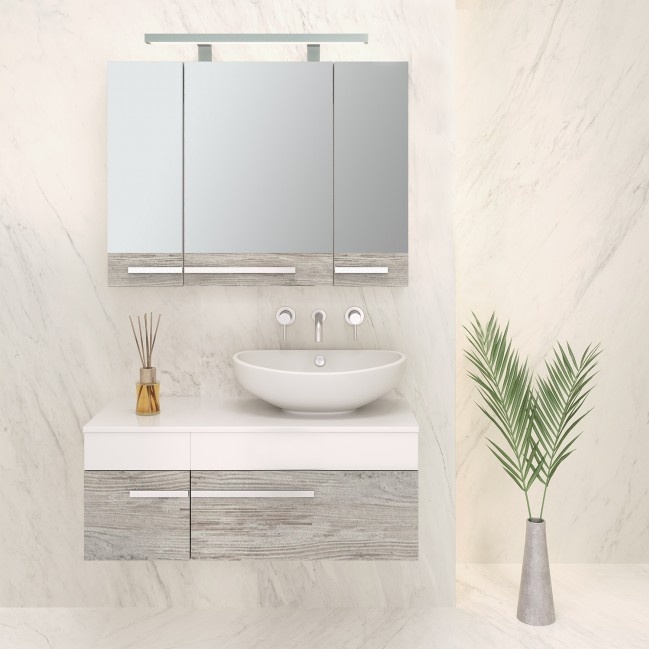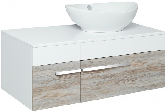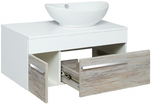 Тумба под раковину Runo Вудлайн 100 см подвесная скандинавский дуб, белая