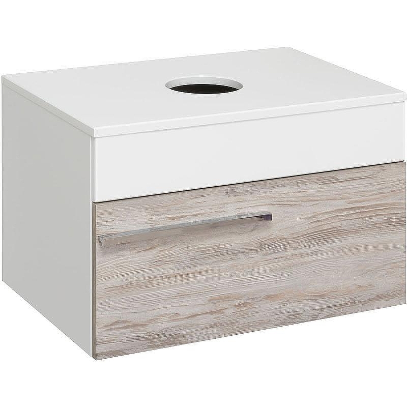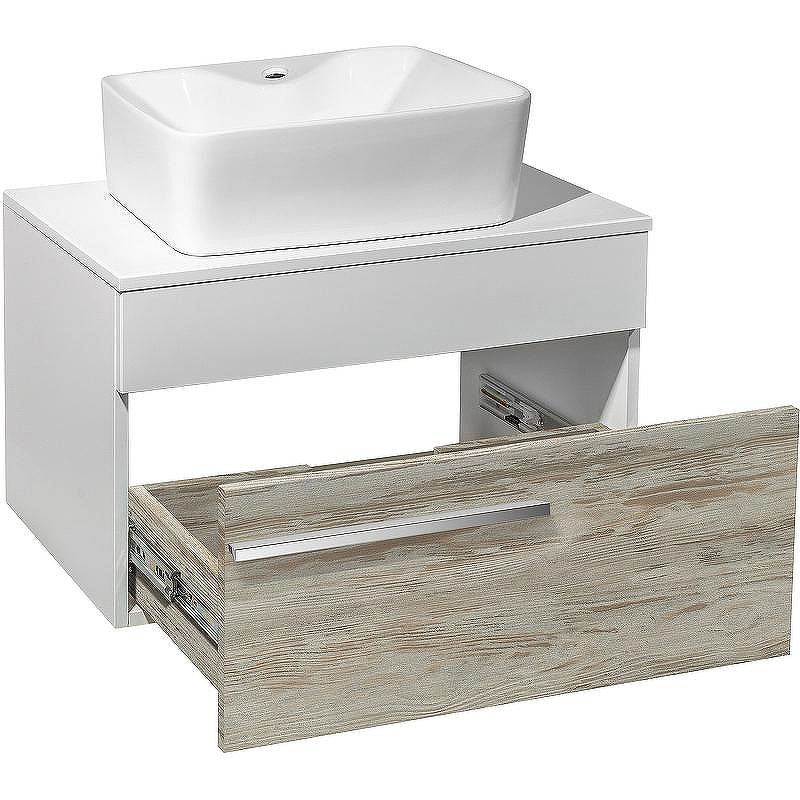 Тумба под раковину Runo Вудлайн 65 см подвесная скандинавский дуб, белая