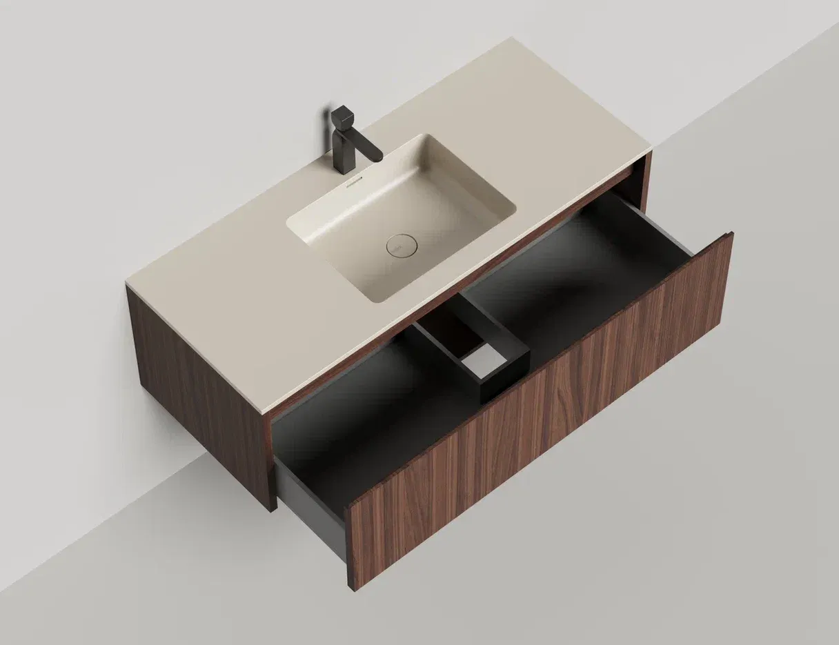 Domino Игра по вашим правилам Подвесная тумба Domino предназначена для установки со встроенными или накладными раковинами Salini. Она отличается современным дизайном и привлекательным внешним видом. Гладкие и рельефные фасады ящиков в шпоне дерева, глянцевом или матовом лаке позволяют подобрать комбинацию подходящего размера (ширина от 80 до 200 см) и наполнения. В сочетание со столешницей Costa из каменного литья S-Stone со встроенной или накладной раковиной создадут практичность и расширят функционал повседневного использования, а также гарантируют простоту ухода. Domino — беспроигрышное решение для любого интерьера. Глубина тумбы составляет 50см, высота 40см