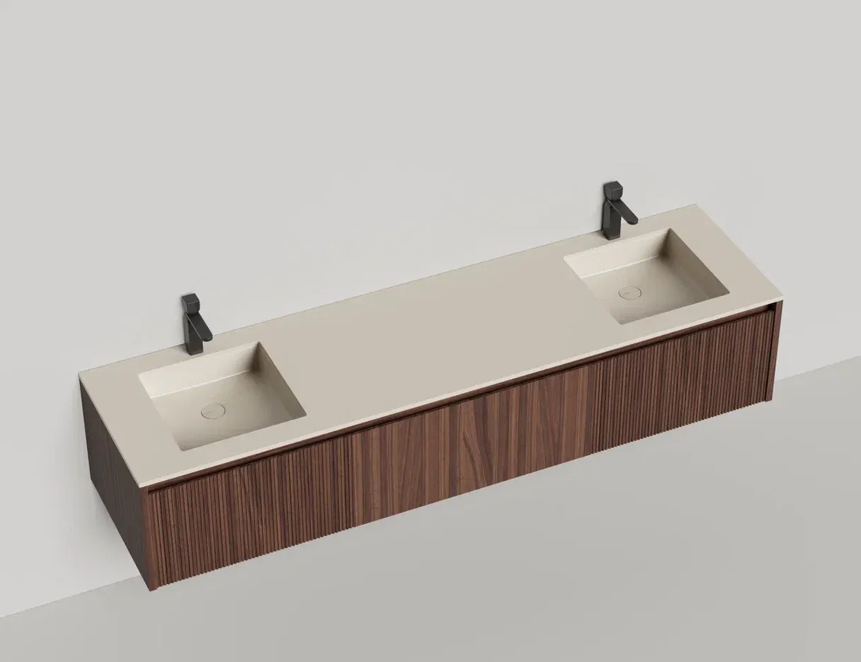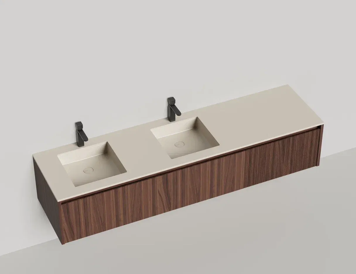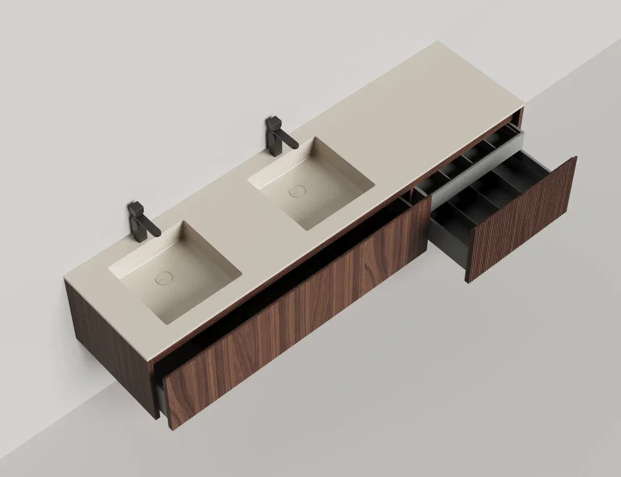 Domino Игра по вашим правилам Подвесная тумба Domino предназначена для установки со встроенными или накладными раковинами Salini. Она отличается современным дизайном и привлекательным внешним видом. Гладкие и рельефные фасады ящиков в шпоне дерева, глянцевом или матовом лаке позволяют подобрать комбинацию подходящего размера (ширина от 80 до 200 см) и наполнения. В сочетание со столешницей Costa из каменного литья S-Stone со встроенной или накладной раковиной создадут практичность и расширят функционал повседневного использования, а также гарантируют простоту ухода. Domino — беспроигрышное решение для любого интерьера. Глубина тумбы составляет 50см, высота 40см