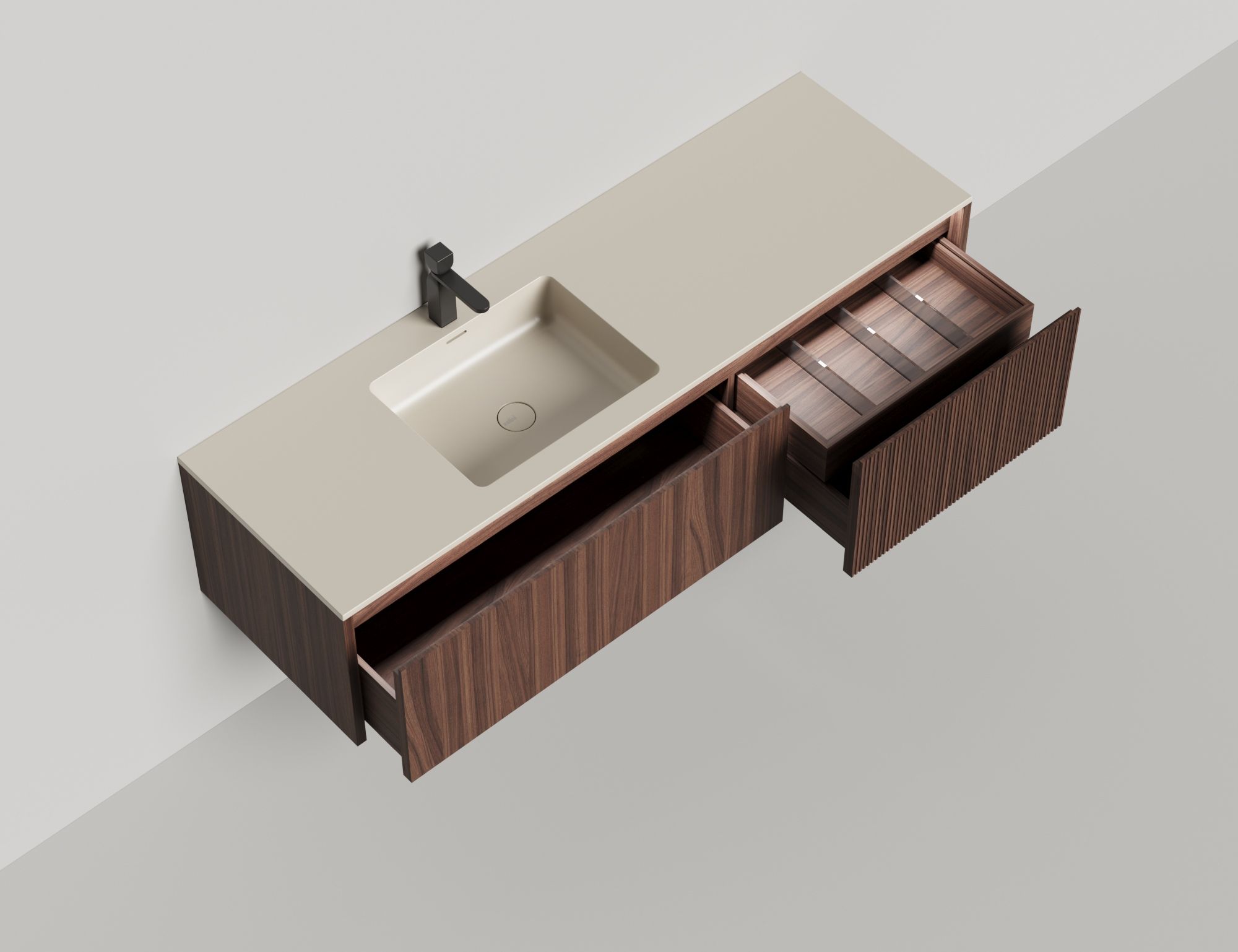 Domino Игра по вашим правилам Подвесная тумба Domino предназначена для установки со встроенными или накладными раковинами Salini. Она отличается современным дизайном и привлекательным внешним видом. Гладкие и рельефные фасады ящиков в шпоне дерева, глянцевом или матовом лаке позволяют подобрать комбинацию подходящего размера (ширина от 80 до 200 см) и наполнения. В сочетание со столешницей Costa из каменного литья S-Stone со встроенной или накладной раковиной создадут практичность и расширят функционал повседневного использования, а также гарантируют простоту ухода. Domino — беспроигрышное решение для любого интерьера. Глубина тумбы составляет 50см, высота 40см
