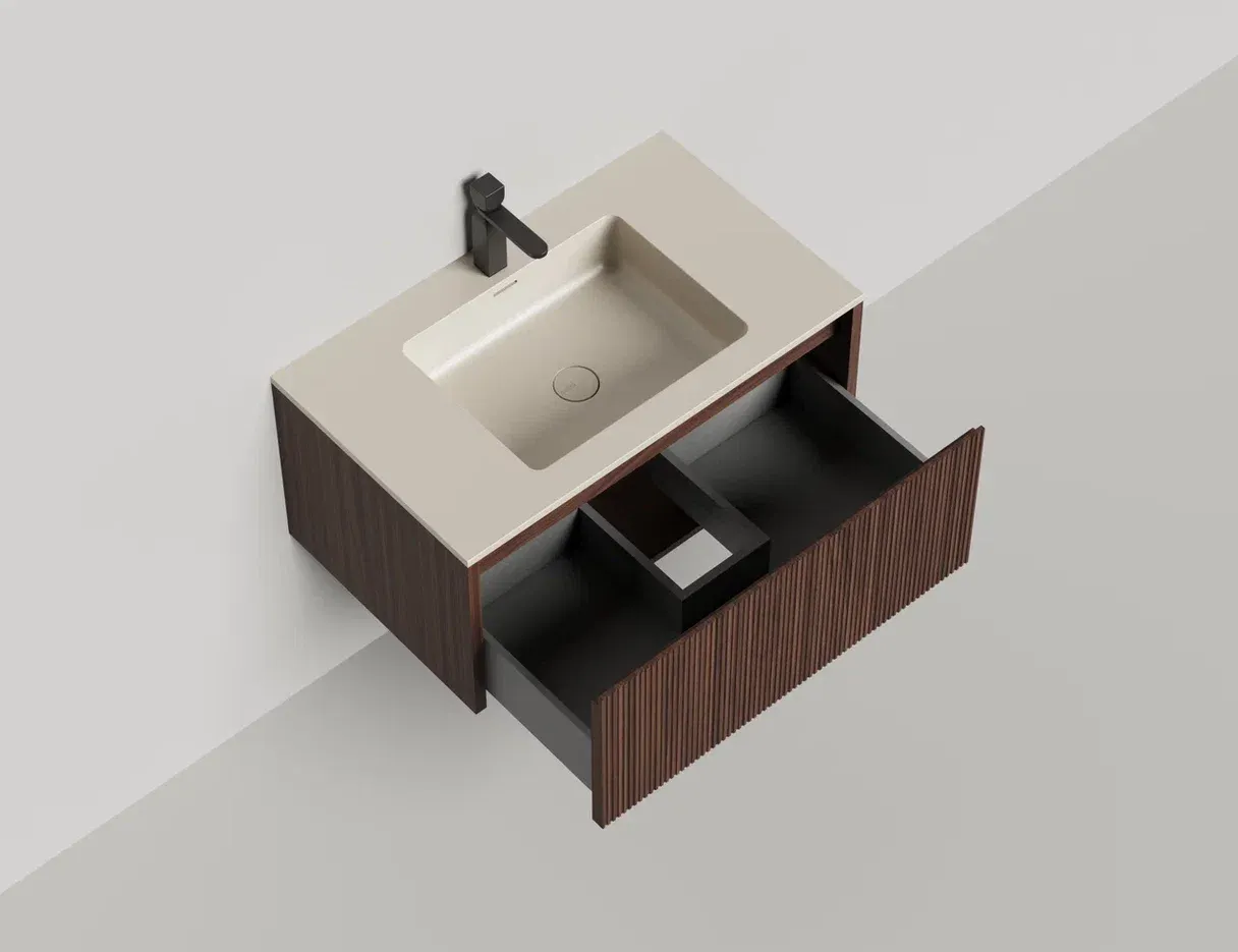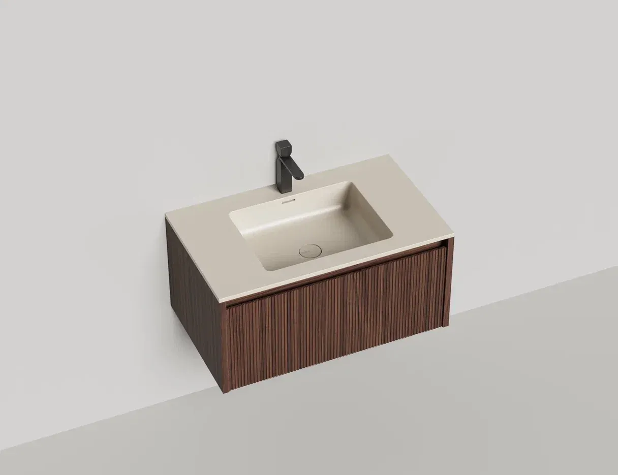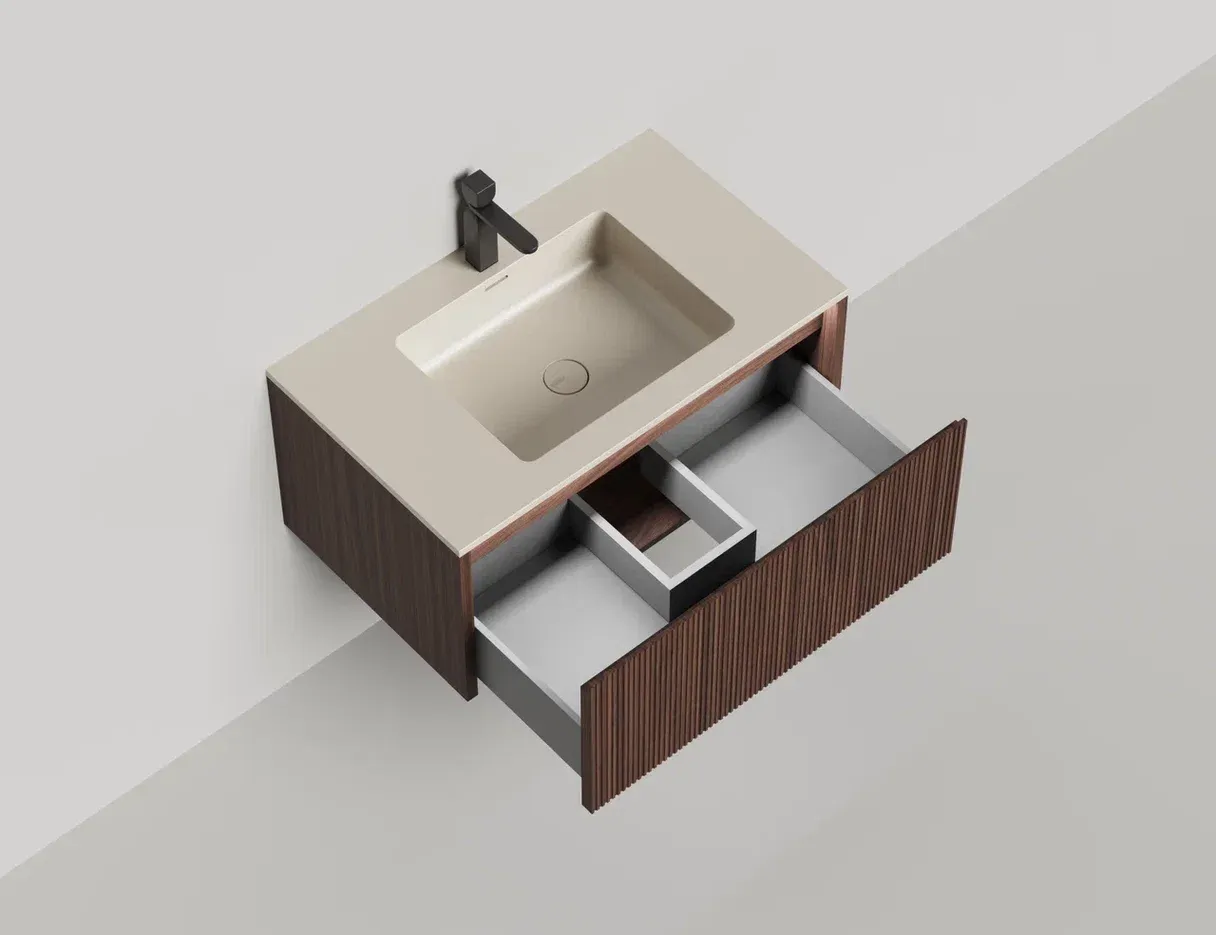 Domino Игра по вашим правилам Подвесная тумба Domino предназначена для установки со встроенными или накладными раковинами Salini. Она отличается современным дизайном и привлекательным внешним видом. Гладкие и рельефные фасады ящиков в шпоне дерева, глянцевом или матовом лаке позволяют подобрать комбинацию подходящего размера (ширина от 80 до 200 см) и наполнения. В сочетание со столешницей Costa из каменного литья S-Stone со встроенной или накладной раковиной создадут практичность и расширят функционал повседневного использования, а также гарантируют простоту ухода. Domino — беспроигрышное решение для любого интерьера. Глубина тумбы составляет 50см, высота 40см