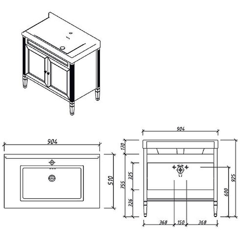 Комплект поставки: тумба, раковина Y-080B.