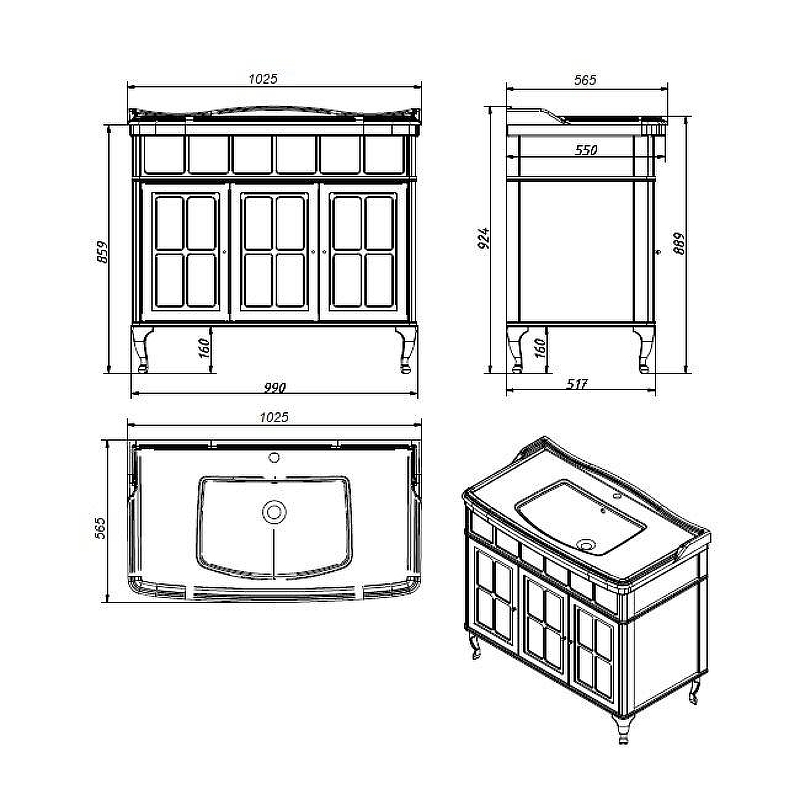 Тумба с раковиной Caprigo Borgo 105 см напольная белая