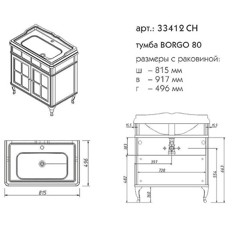 | Оснащение | тумба / ножки / раковина CH-800 |