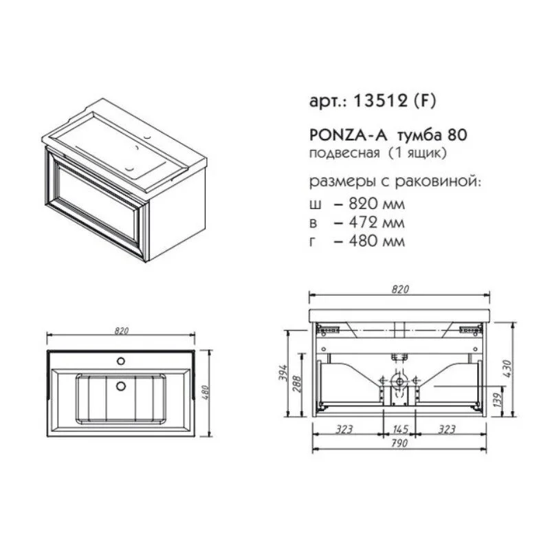 Комплект поставки: тумба, раковина Y-080B.