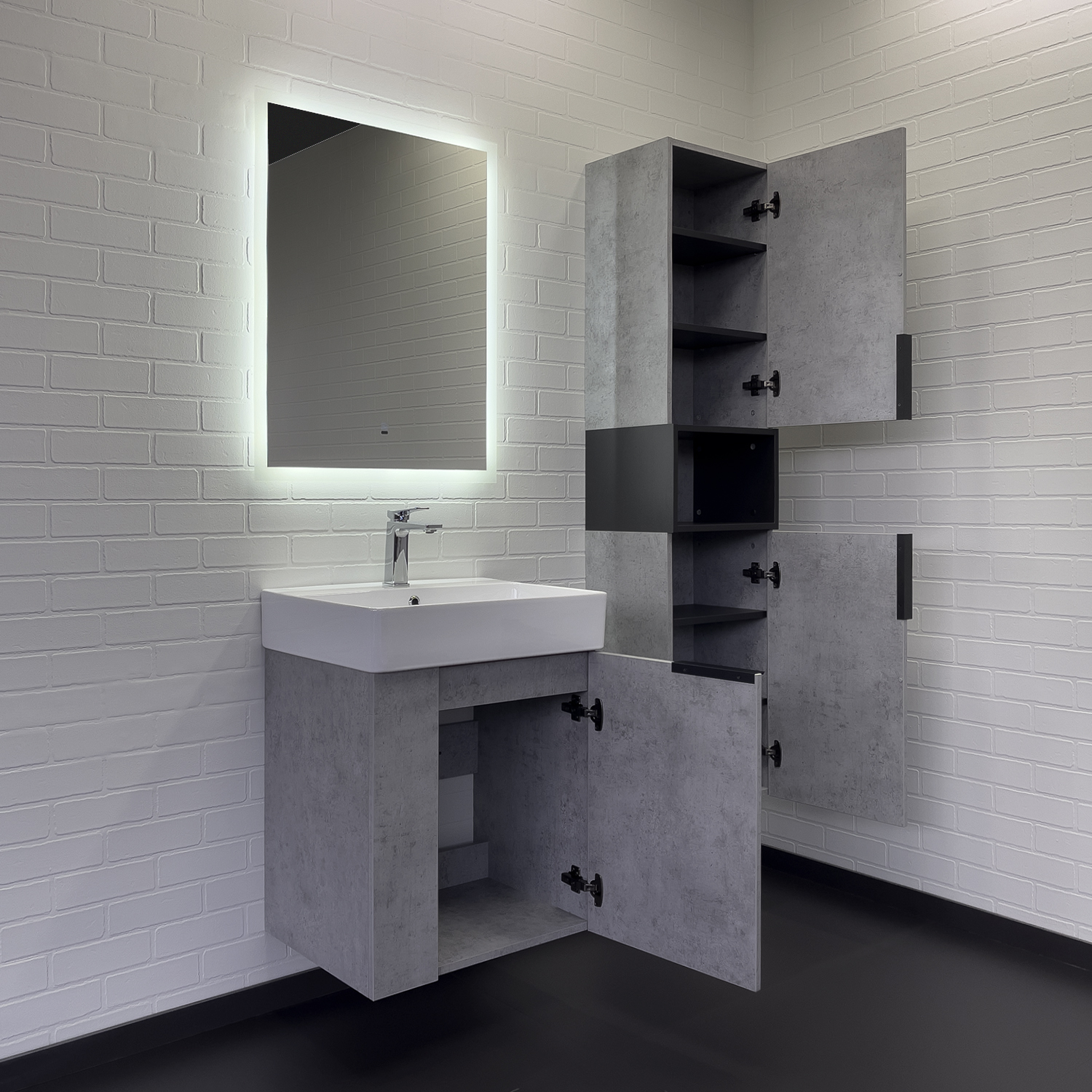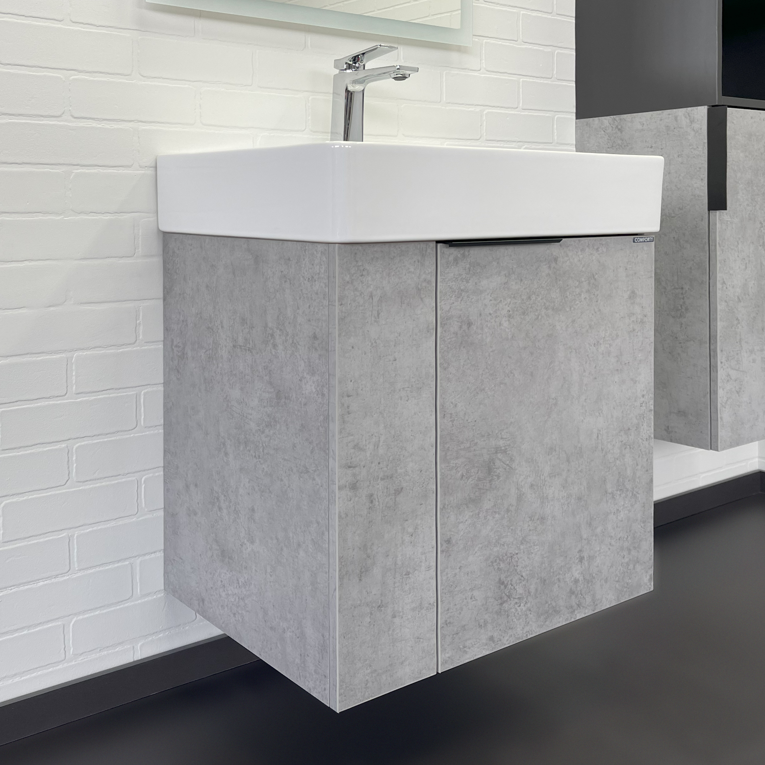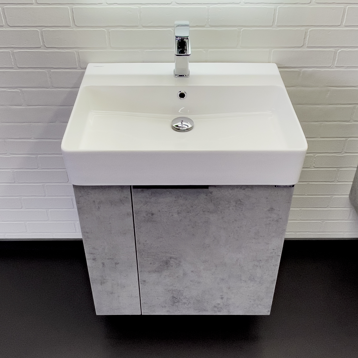 Тумба с раковиной Comforty Асти 60 см подвесная бетон светлый