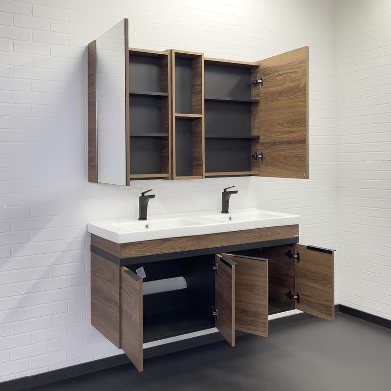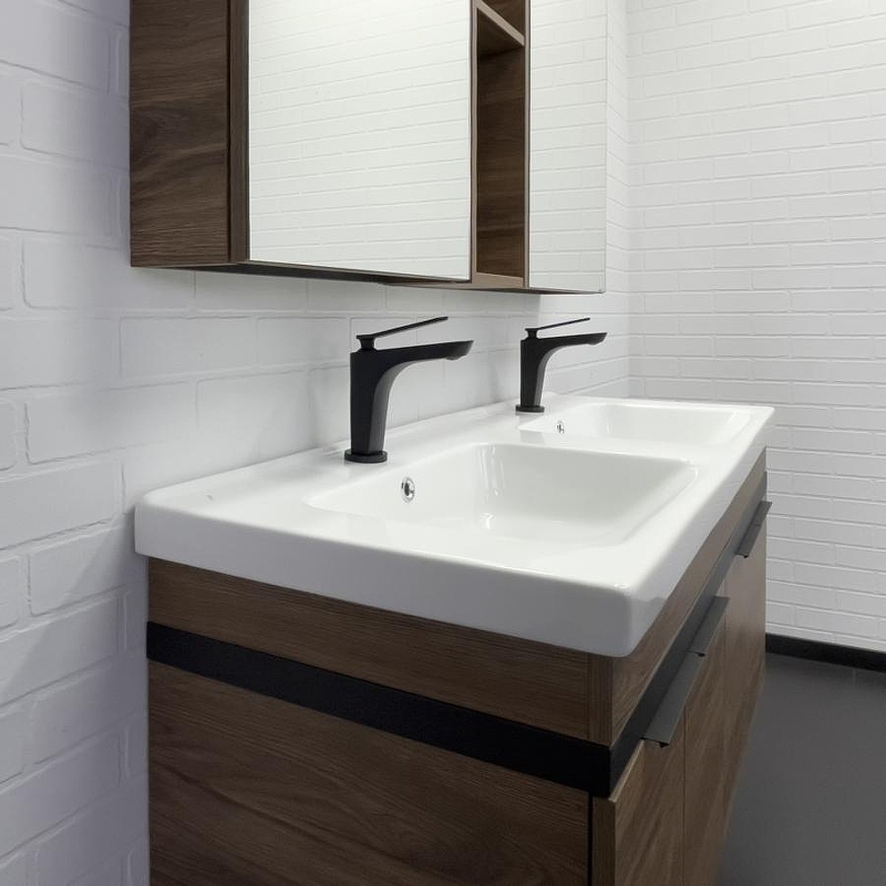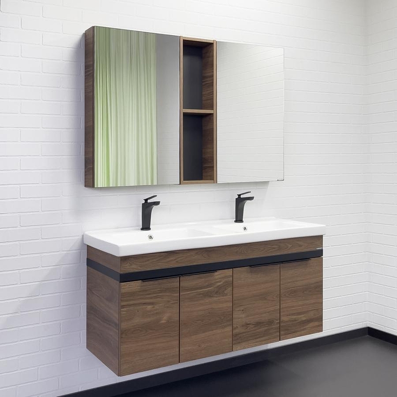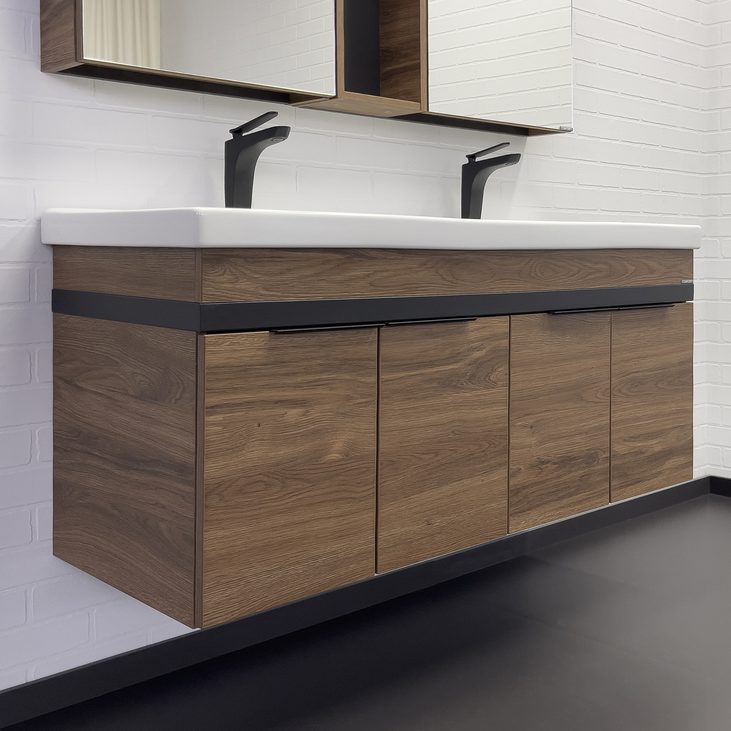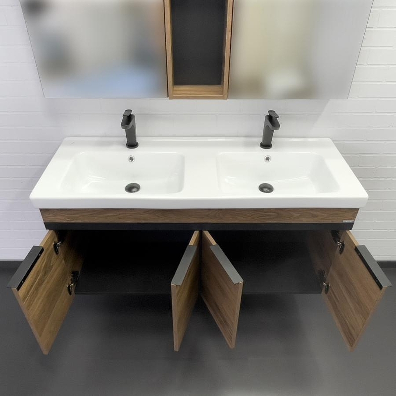 Тумба с раковиной Comforty Дуэт 125 см подвесная дуб темно-коричневый