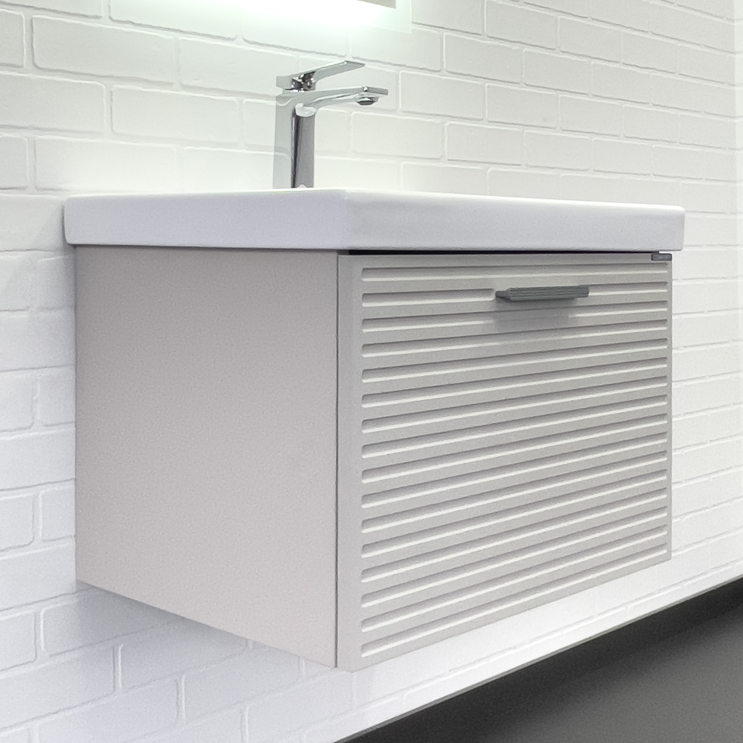 Тумба с раковиной Comforty Касабланка 60 см подвесная серый шелк