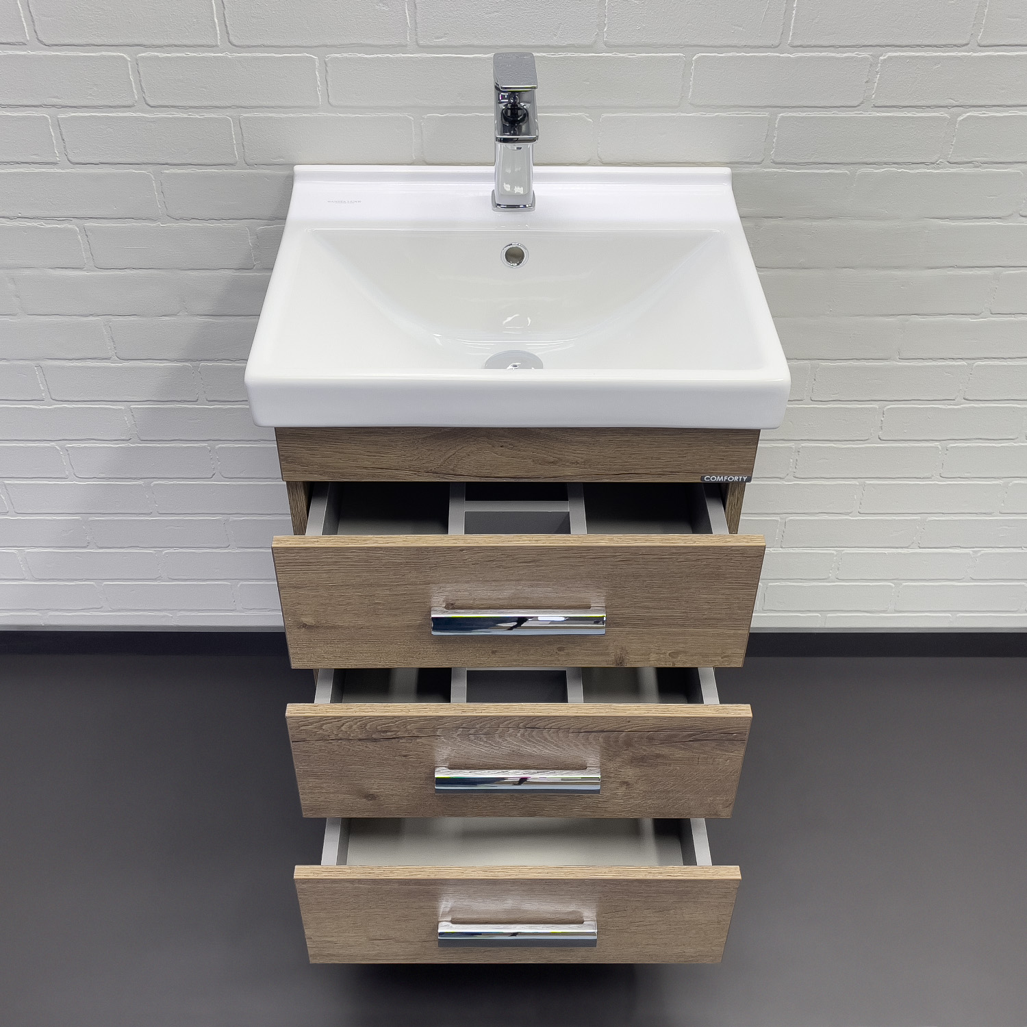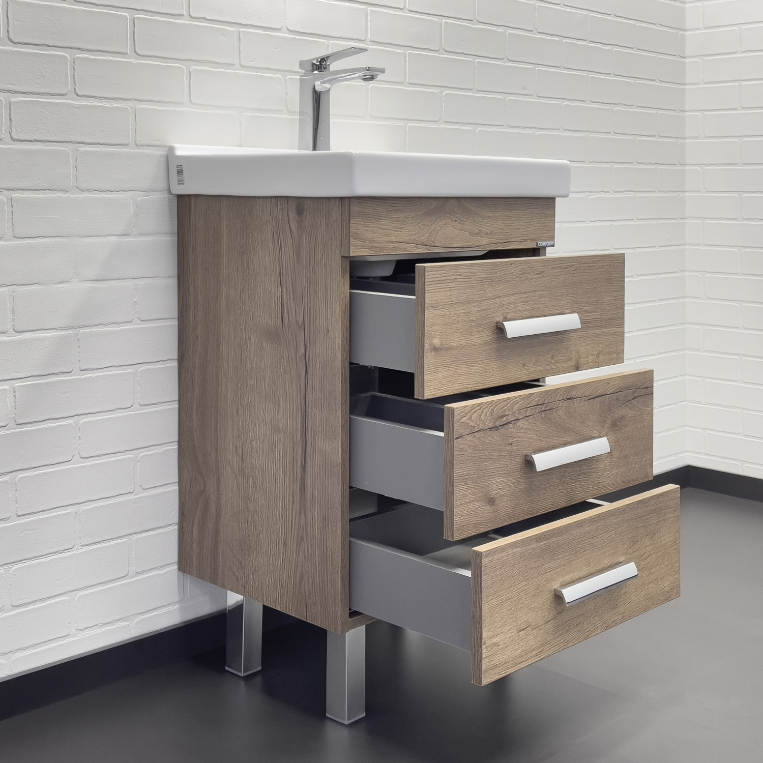 Тумба с раковиной Comforty Никосия 50 см напольная дуб темный