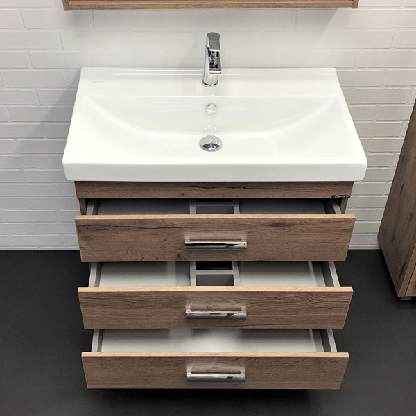 Тумба с раковиной Comforty Никосия 80 см напольная дуб темный