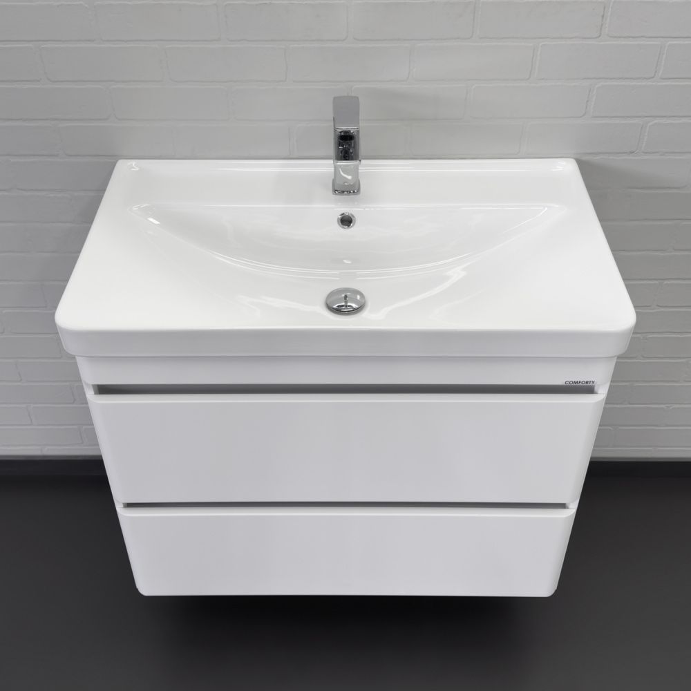 Тумба с раковиной Comforty Валдай 80 см подвесная белая