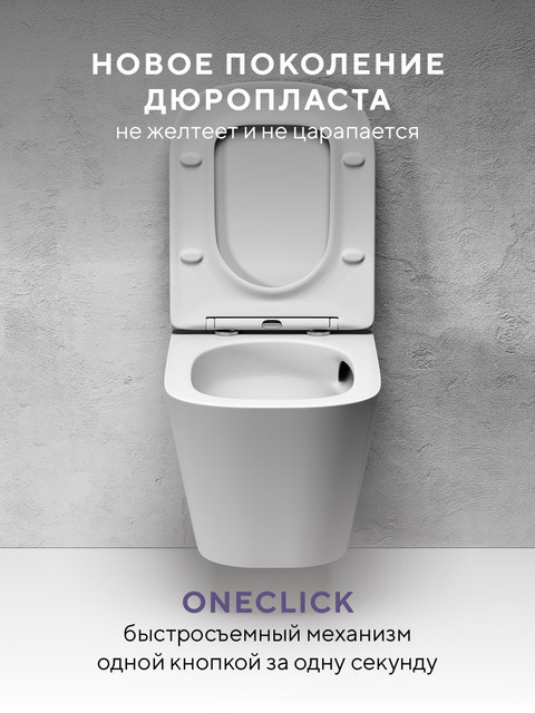 Комплект поставки: унитаз, ультратонкое сиденье OneClick с механизмом Soft Close.