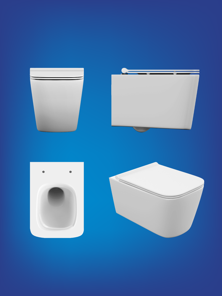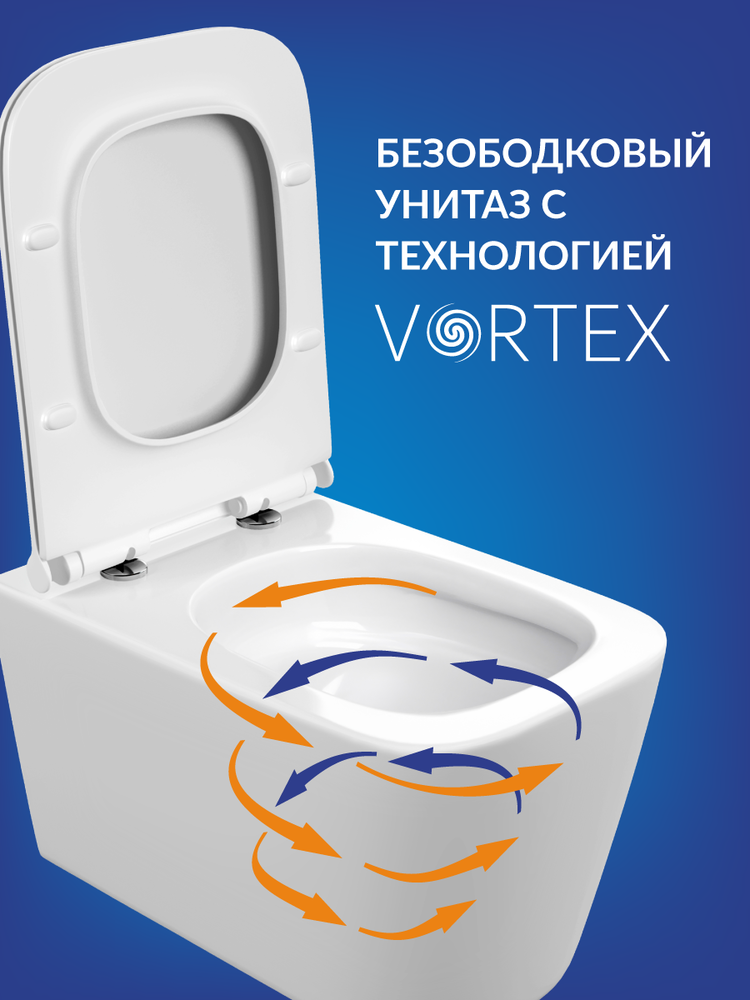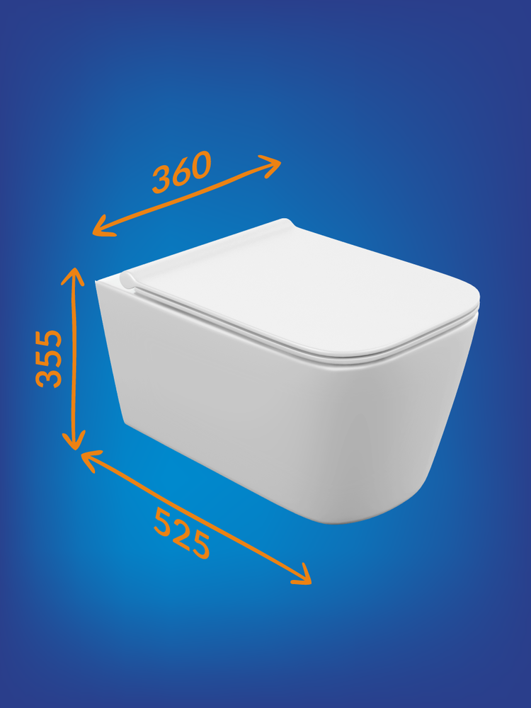 Безободковый подвесной унитаз с ультратонким, антибактериальным сиденьем с плавным закрыванием и легкосъемным механизмом