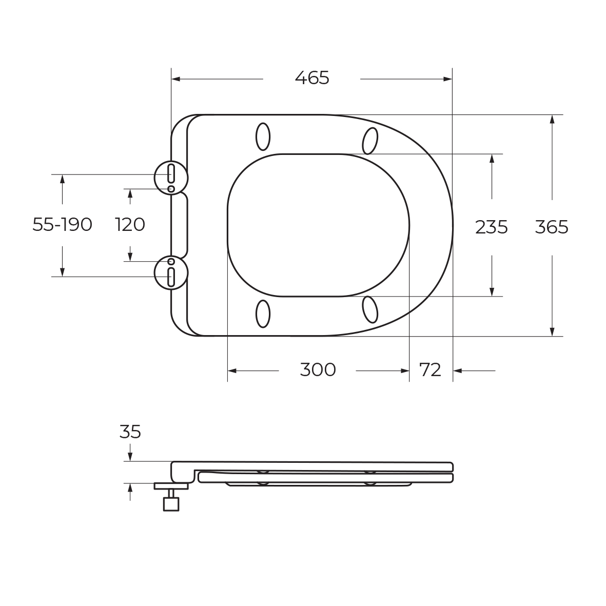 Унитаз выполнен в двух размерах разной длины, что позволит использовать его в компактных санузлах.