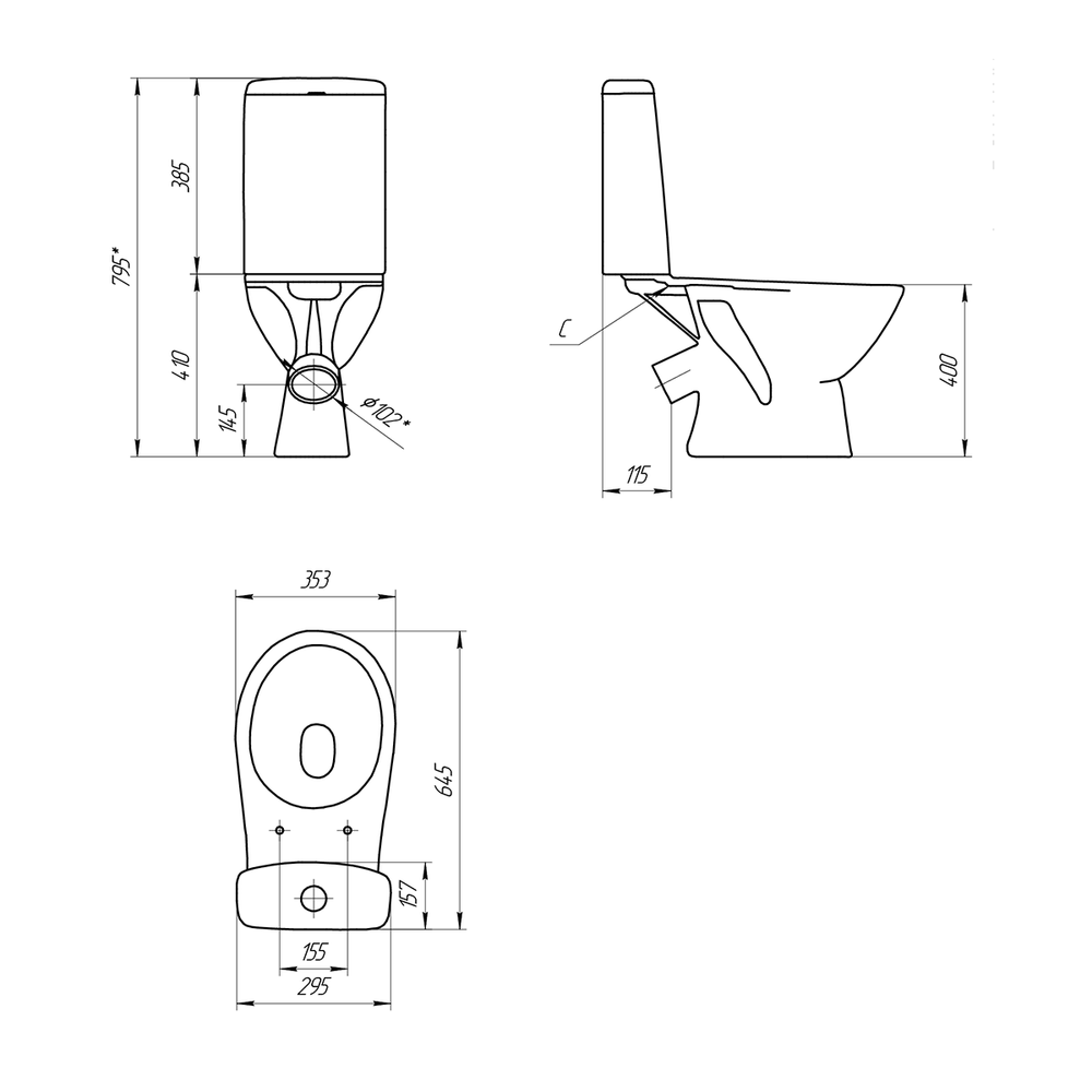 Комплект поставки: чаша унитаза / крышка-сиденье / крепления / бачок / система смыва.