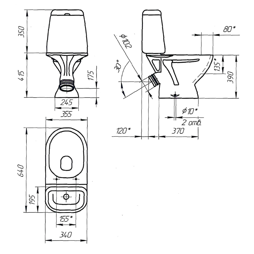 | Оснащение | чаша унитаза / крышка-сиденье / крепления / бачок / система смыва |
