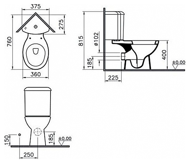 Комплект поставки: чаша унитаза, крышка-сиденье, бачок.
