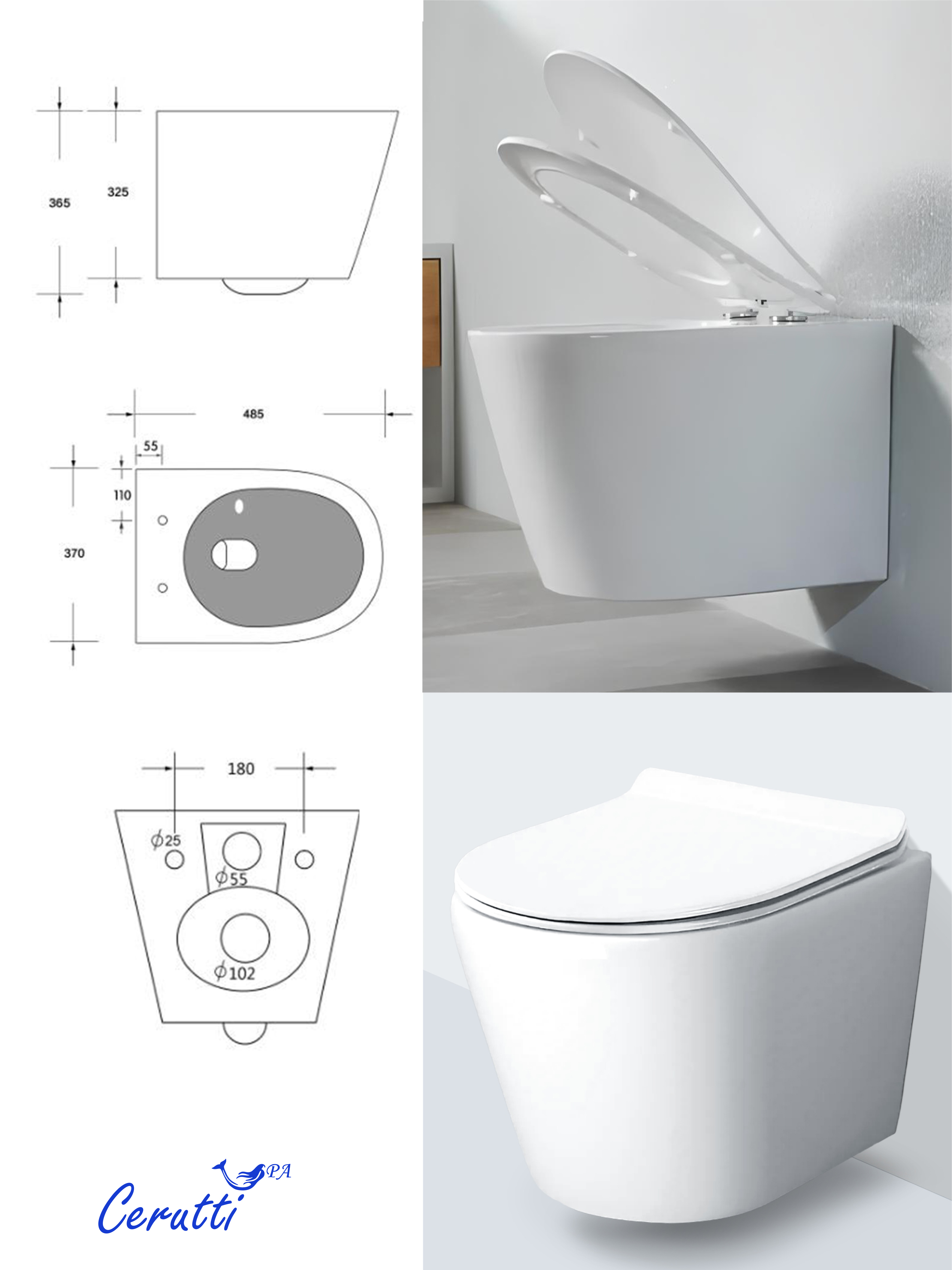 Унитаз подвесной Ceruttispa Luigi CT11101 безободковый с микролифтом