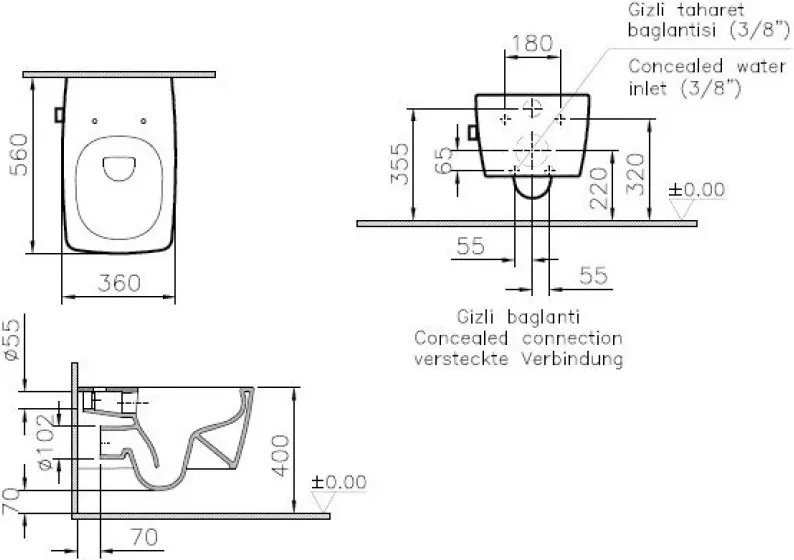 | Установка бачка | в стену (скрытый) |
