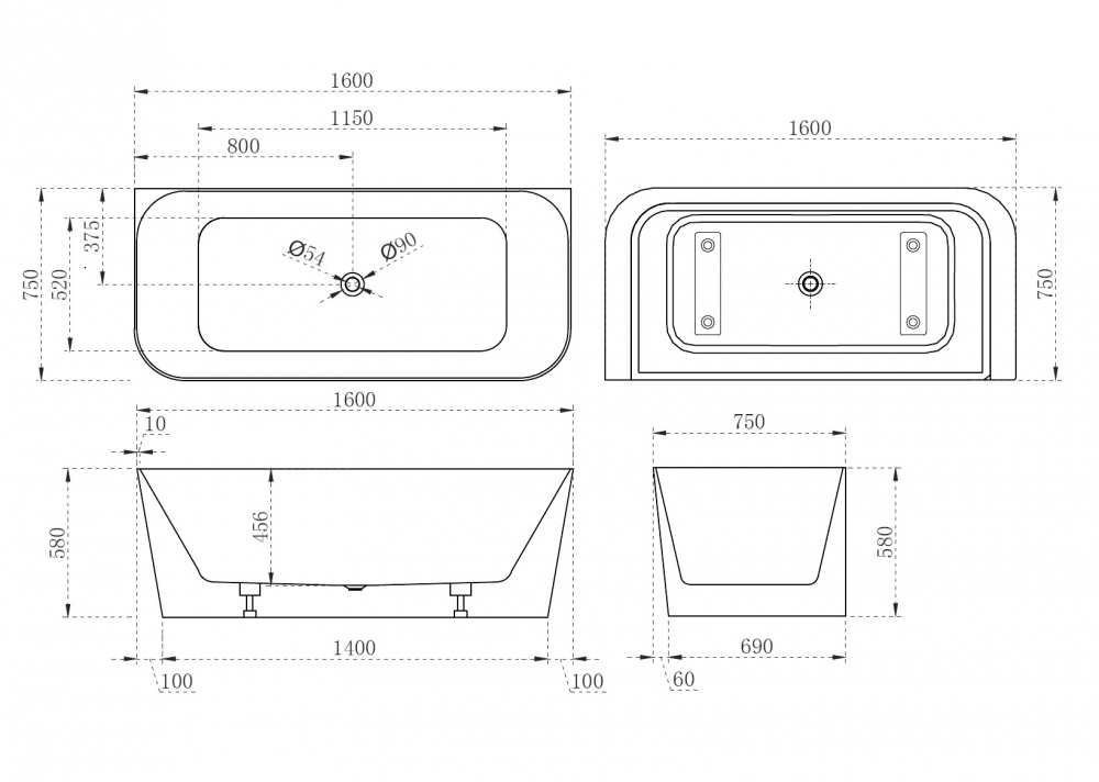 Ванна акриловая Abber AB9223-1.6 белая