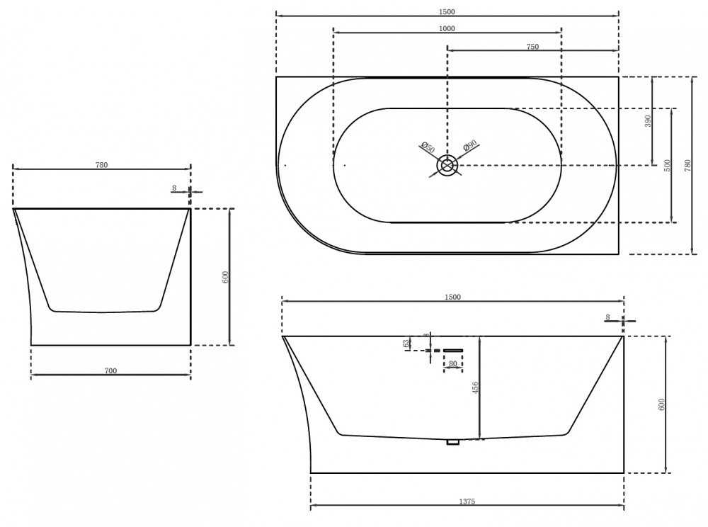 Расположение слива: по центру