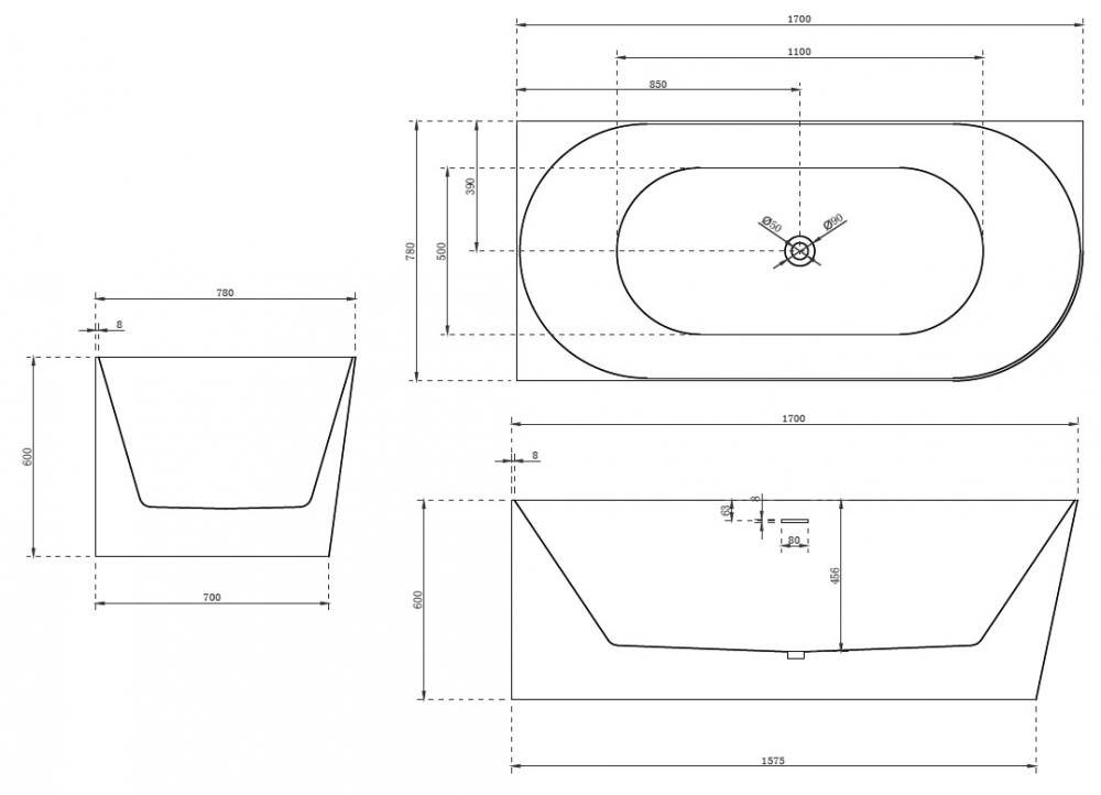 Расположение слива: по центру