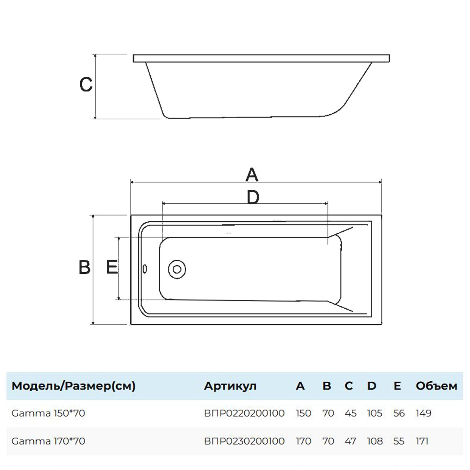 Комплект поставки: ванна.
