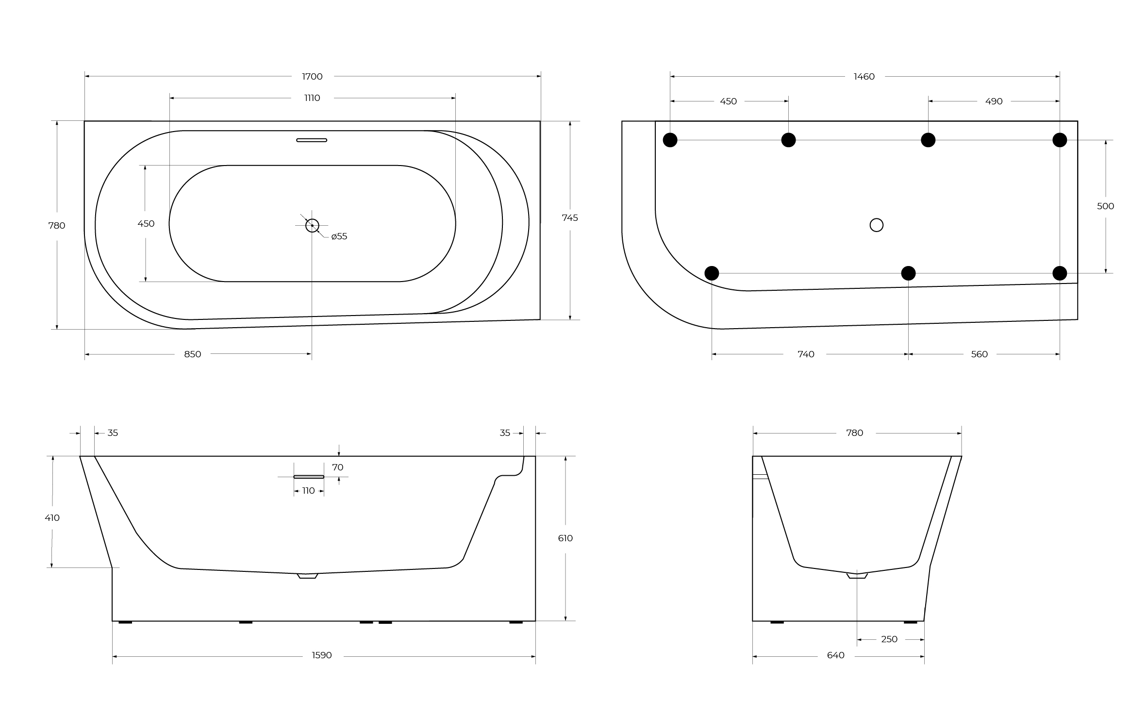 Комплект поставки: ванна, слив-перелив, ножки, крепления.