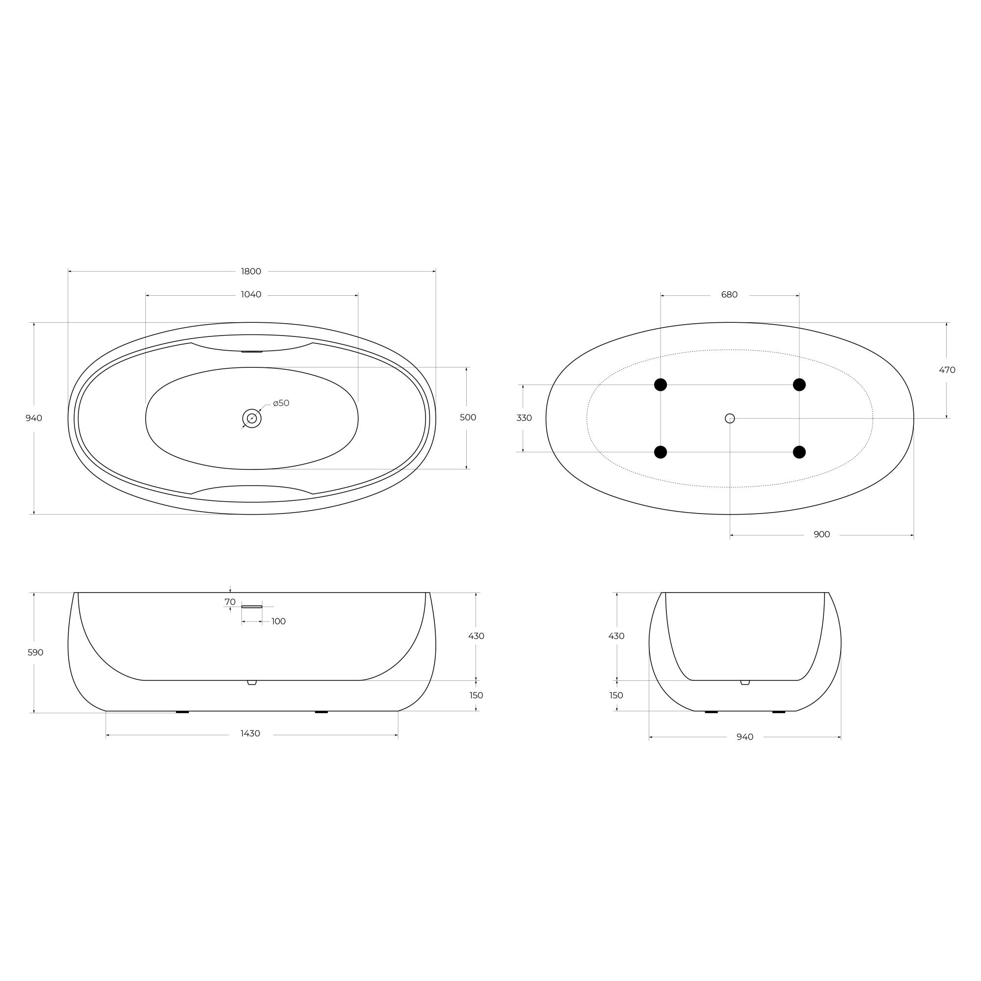 Комплект поставки: ванна, слив-перелив, ножки, крепления.