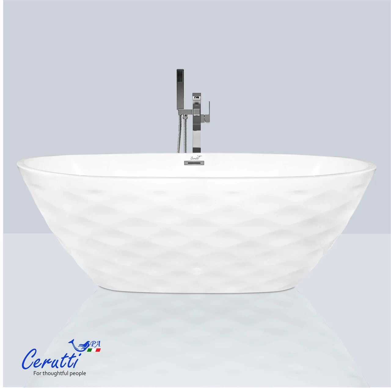 Акриловая отдельностоящая ванна TONIA170 бренда Ceruttispa в современном стиле Modern имеет практичную форму овала и необычную поверхность.