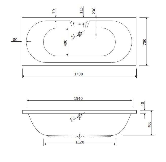 Ванна акриловая Cezares Calisto 170x70 CALISTO-170-70-45-W37