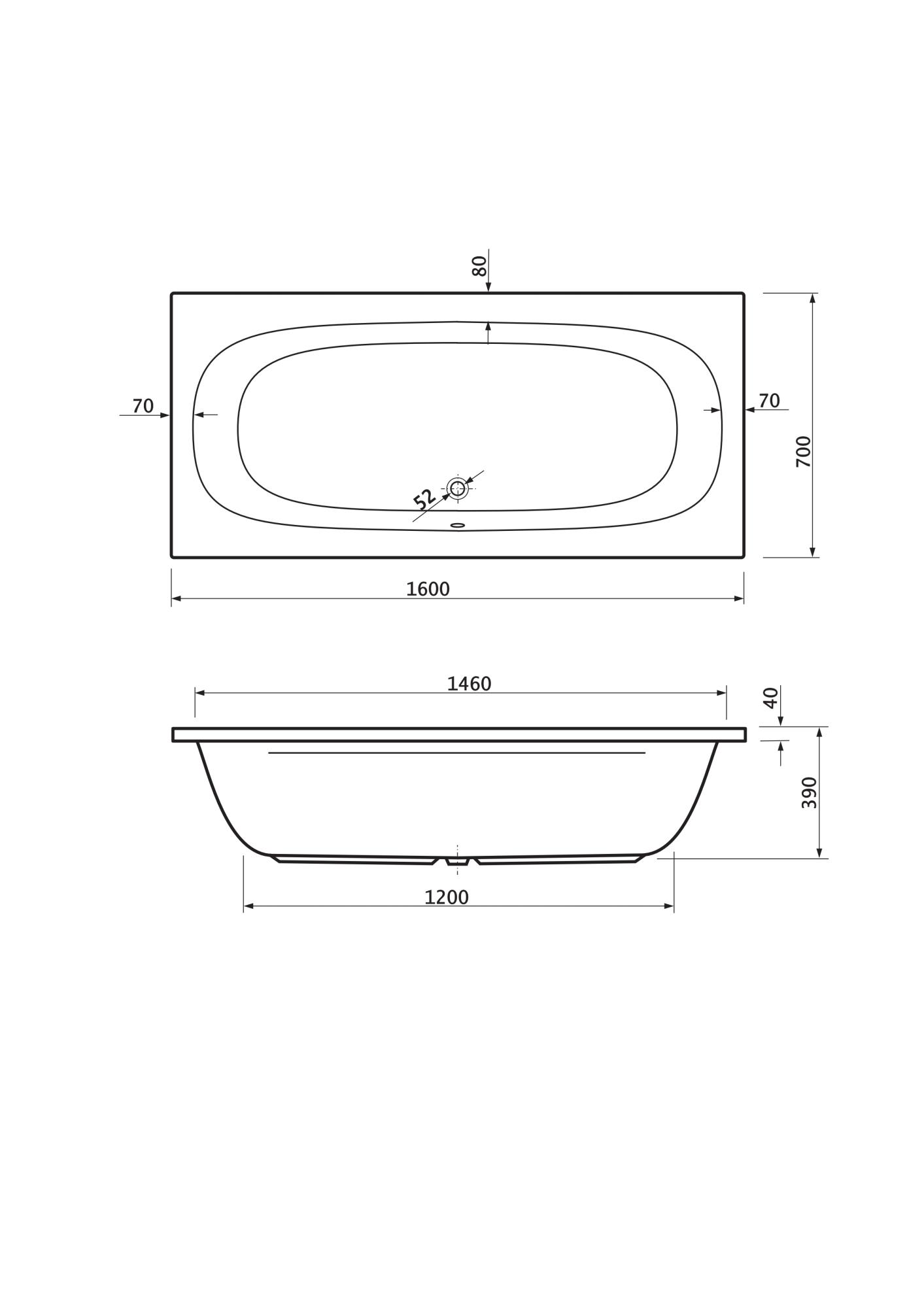 Ванна акриловая Cezares Piave 160x70 PIAVE-160-70-42-W37