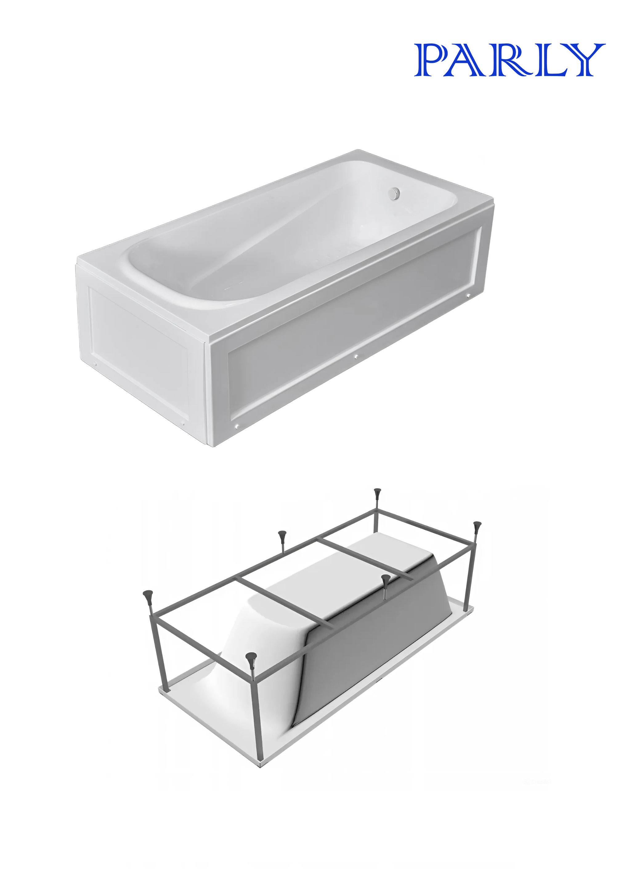 Акриловая приставная ванна ORTIZ 160 бренда PARLY выполнена в белом цвете и имеет классическую прямоугольную форму.