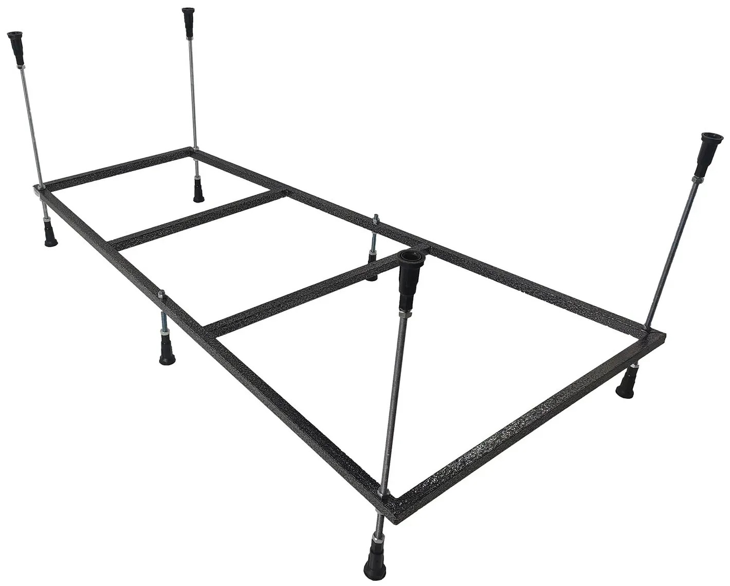 Ванная устанавливается на жесткий сварной каркас с регулируемыми ножками до 20 мм. Металлические детали каркаса подвергаются трехступенчатой обработке
