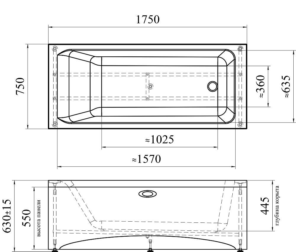 Комплект поставки: чаша ванны / опорная рама.