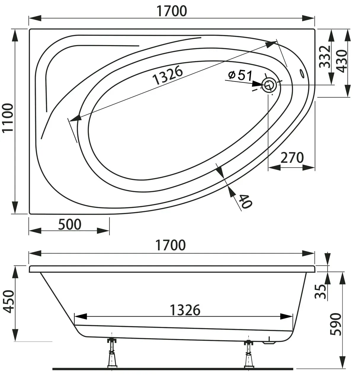 Комплект поставки: ванна.