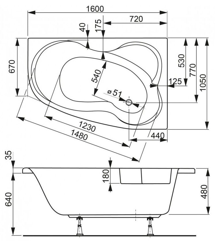 Ванна акриловая Vagnerplast Melite 160x105 R VPBA163MEL3PX-04