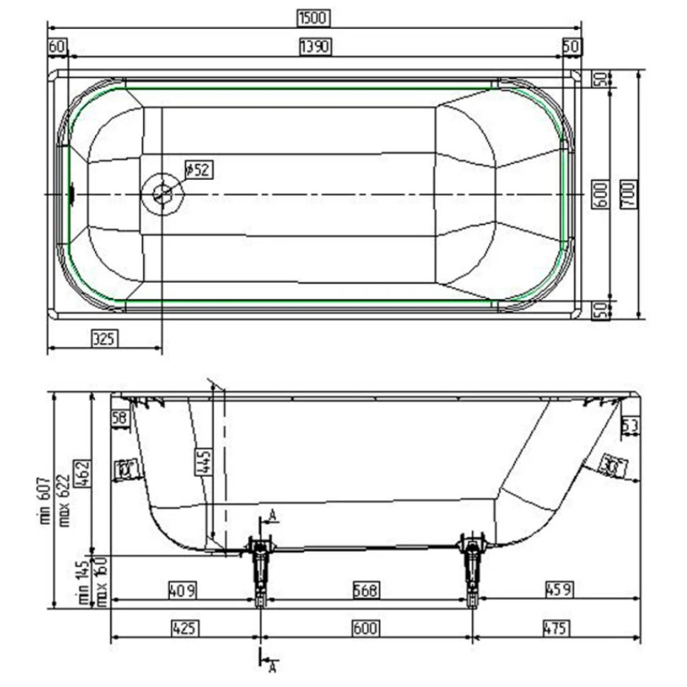 Wotte Start УР 1600х750х458 ванна чугунная c отверстиями для ручек (БП-00000002)