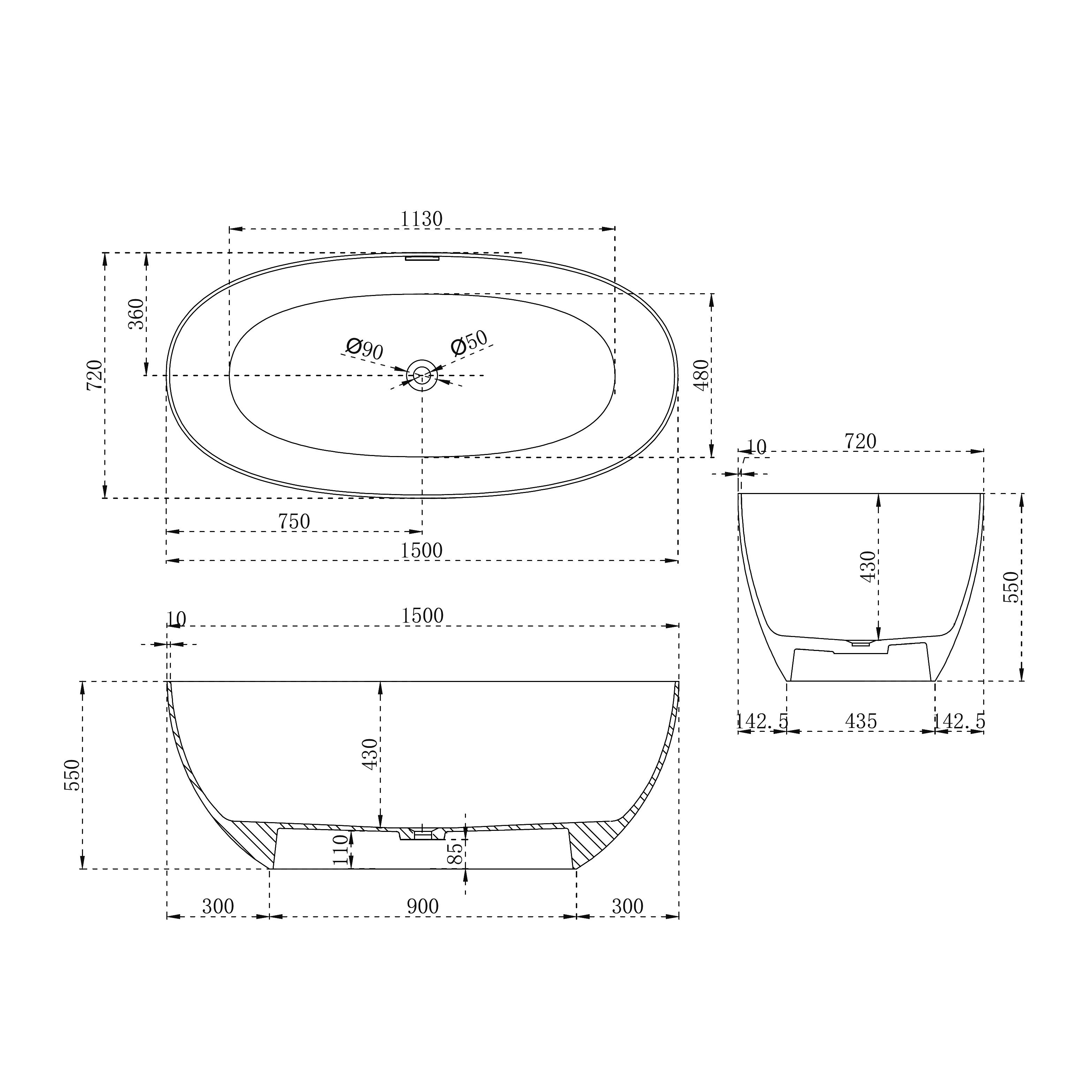 Ванна из искусственного камня ABBER Stein AS9624-1.5 белая матовая