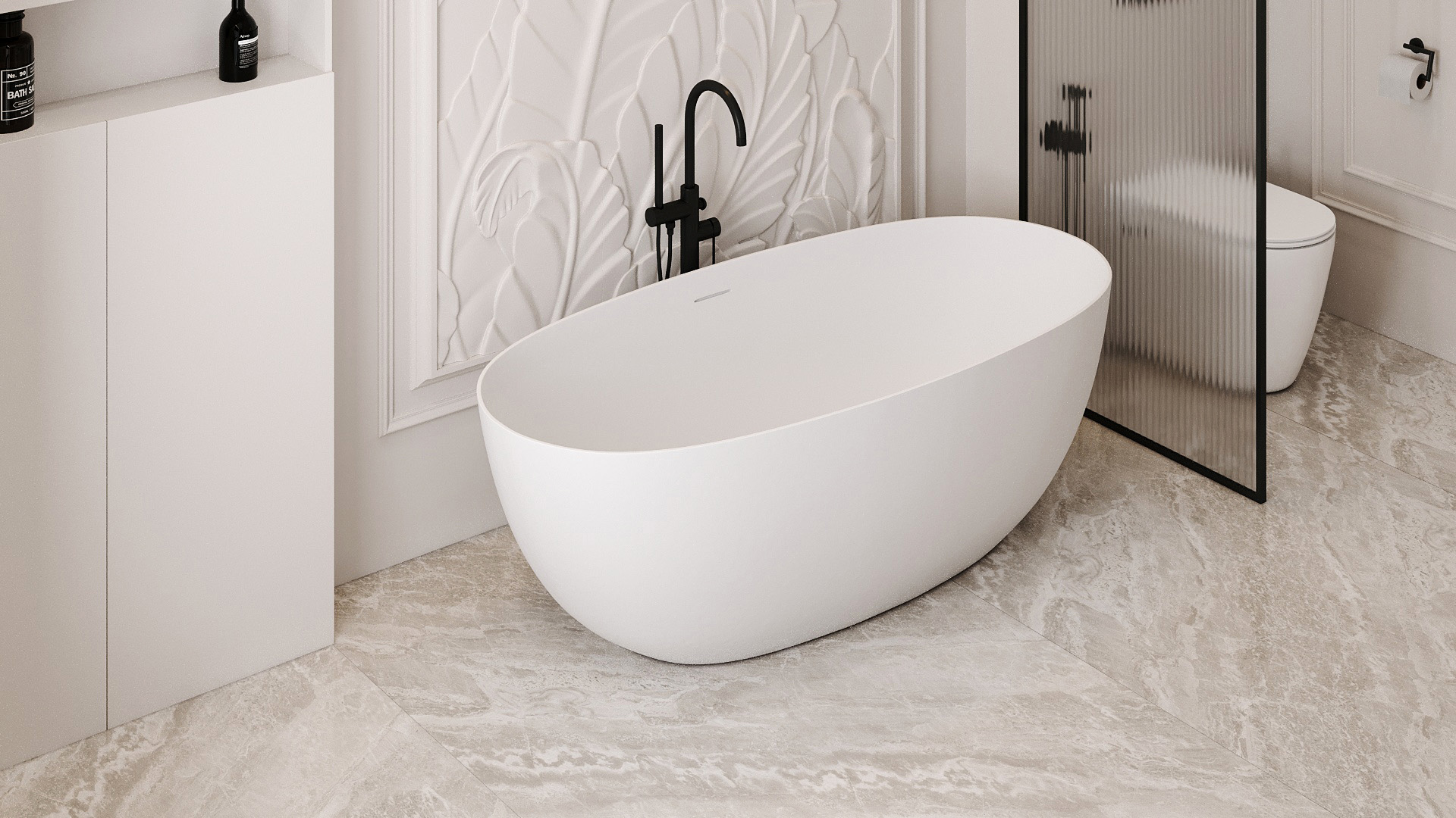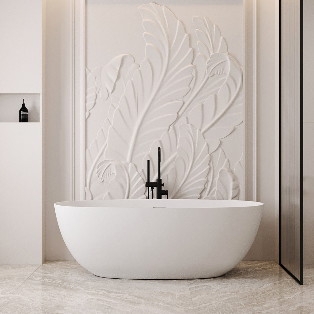 Ванны Abber из искусственного камня дарят уникальное тактильное ощущение: поверхность остается приятно теплой даже в прохладном помещении. Матовая текстура мягко рассеивает свет, создавая в ванной комнате атмосферу спа-салона. Высокая плотность материала обеспечивает отличную звукоизоляцию — наполнение чаши водой происходит почти бесшумно, сохраняя моменты уединения.