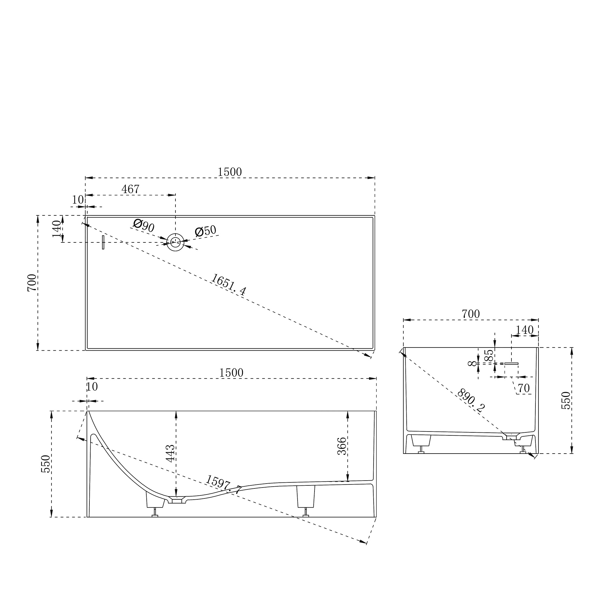Ванна из искусственного камня ABBER Stein AS9640-1.5 белая матовая