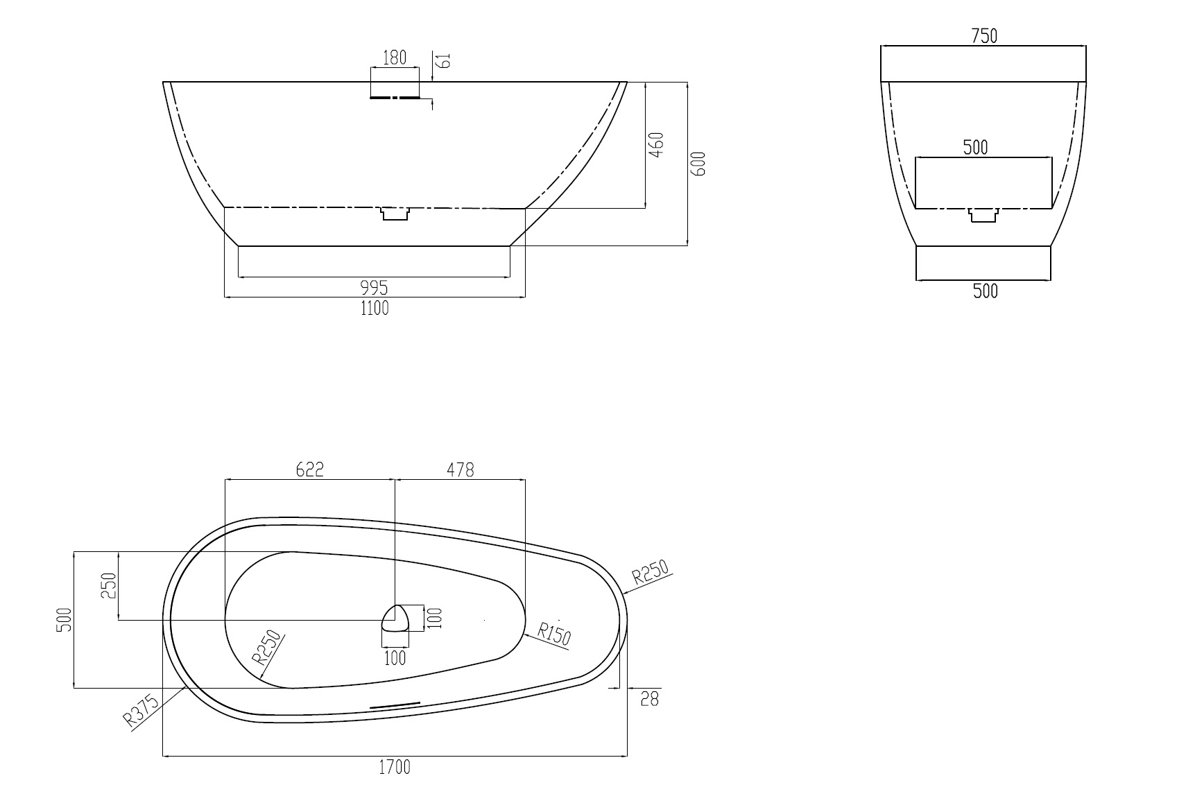 Ванна из искусственного камня ABBER Dortmund AM9911G серая матовая