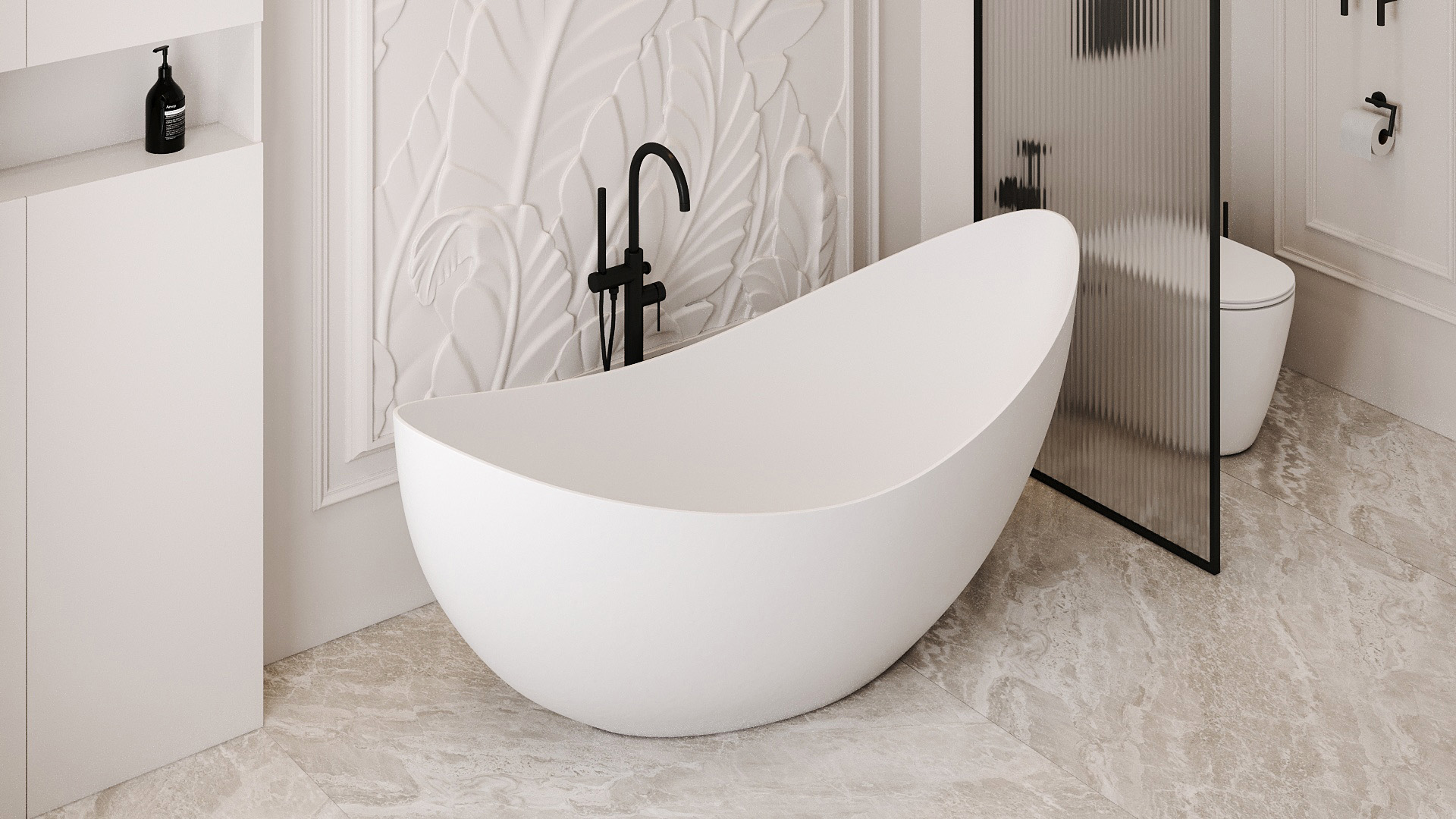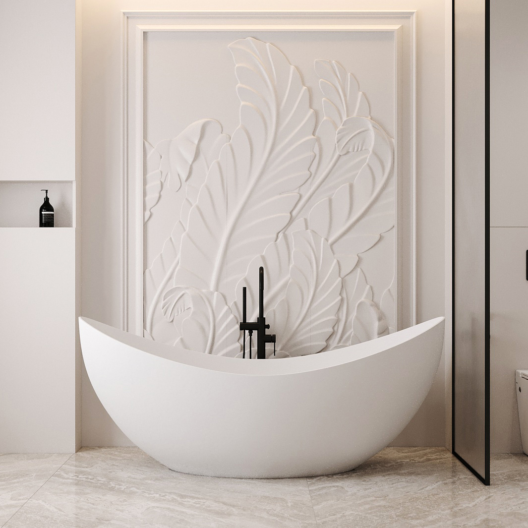 Ванны Abber из искусственного камня дарят уникальное тактильное ощущение: поверхность остается приятно теплой даже в прохладном помещении. Матовая текстура мягко рассеивает свет, создавая в ванной комнате атмосферу спа-салона. Высокая плотность материала обеспечивает отличную звукоизоляцию — наполнение чаши водой происходит почти бесшумно, сохраняя моменты уединения.