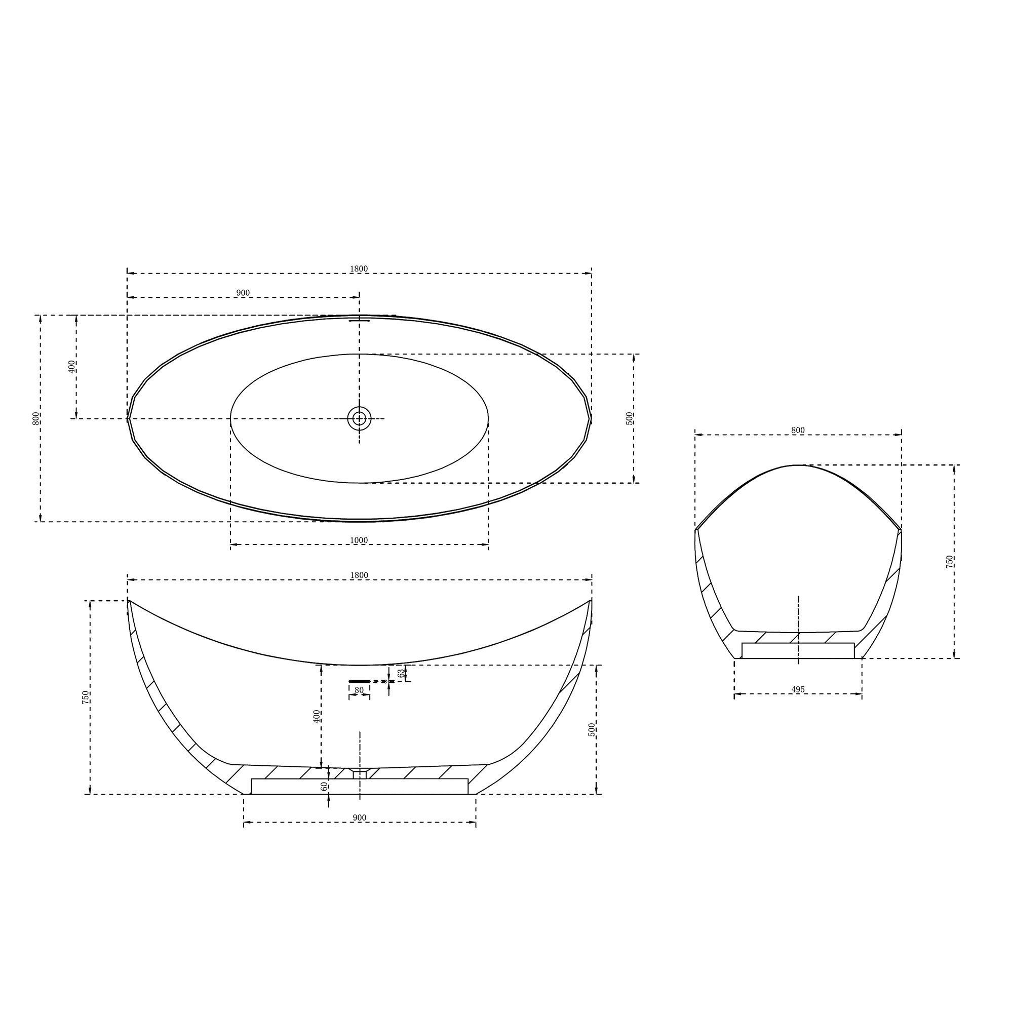 Ванна из искусственного камня ABBER Stein AS9633 белая матовая
