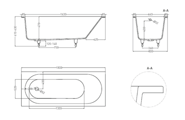 - Габариты (Д×Ш×В): 1800 × 800 × 610 мм